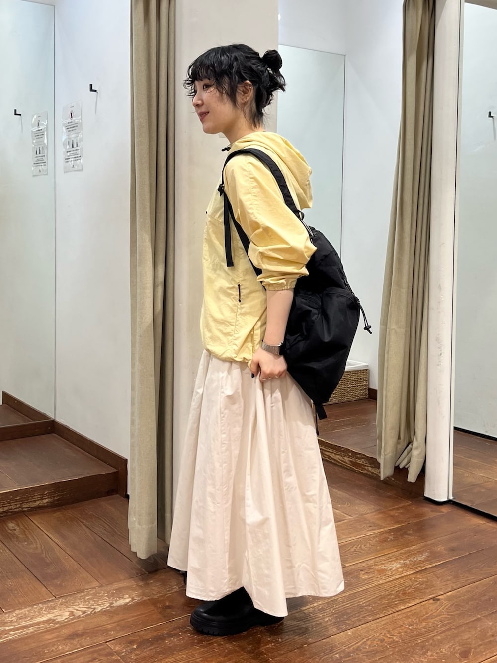 イエローはセットアップで着用するとよりカジュアルですが、スカートあわせで抜け感あるスタイルが叶います🥂