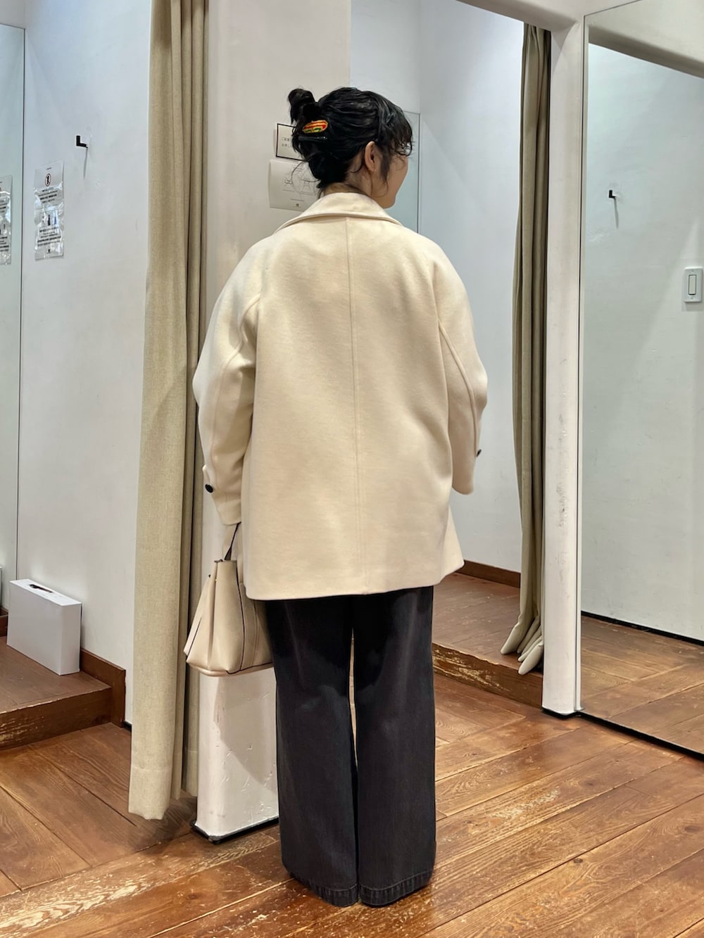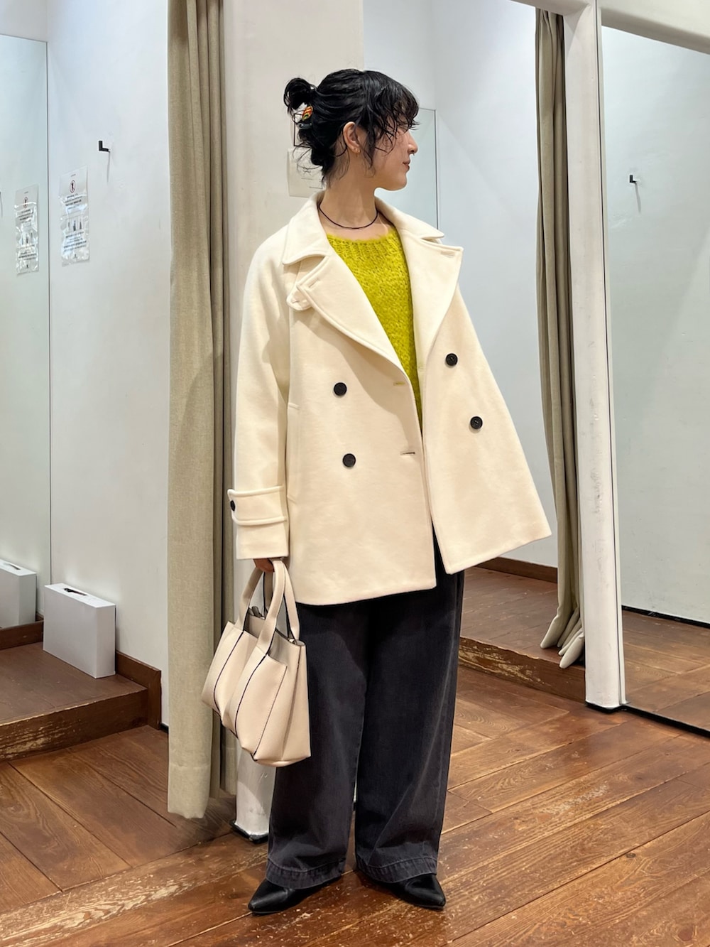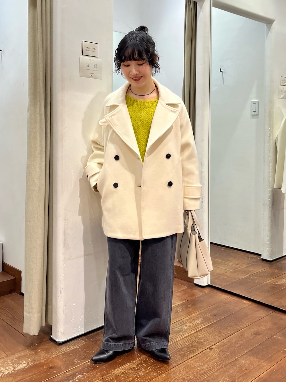 ウールの暖かみがしっかりあるPコート。白みが強いホワイトはカラー物も映えさせてくれます☁