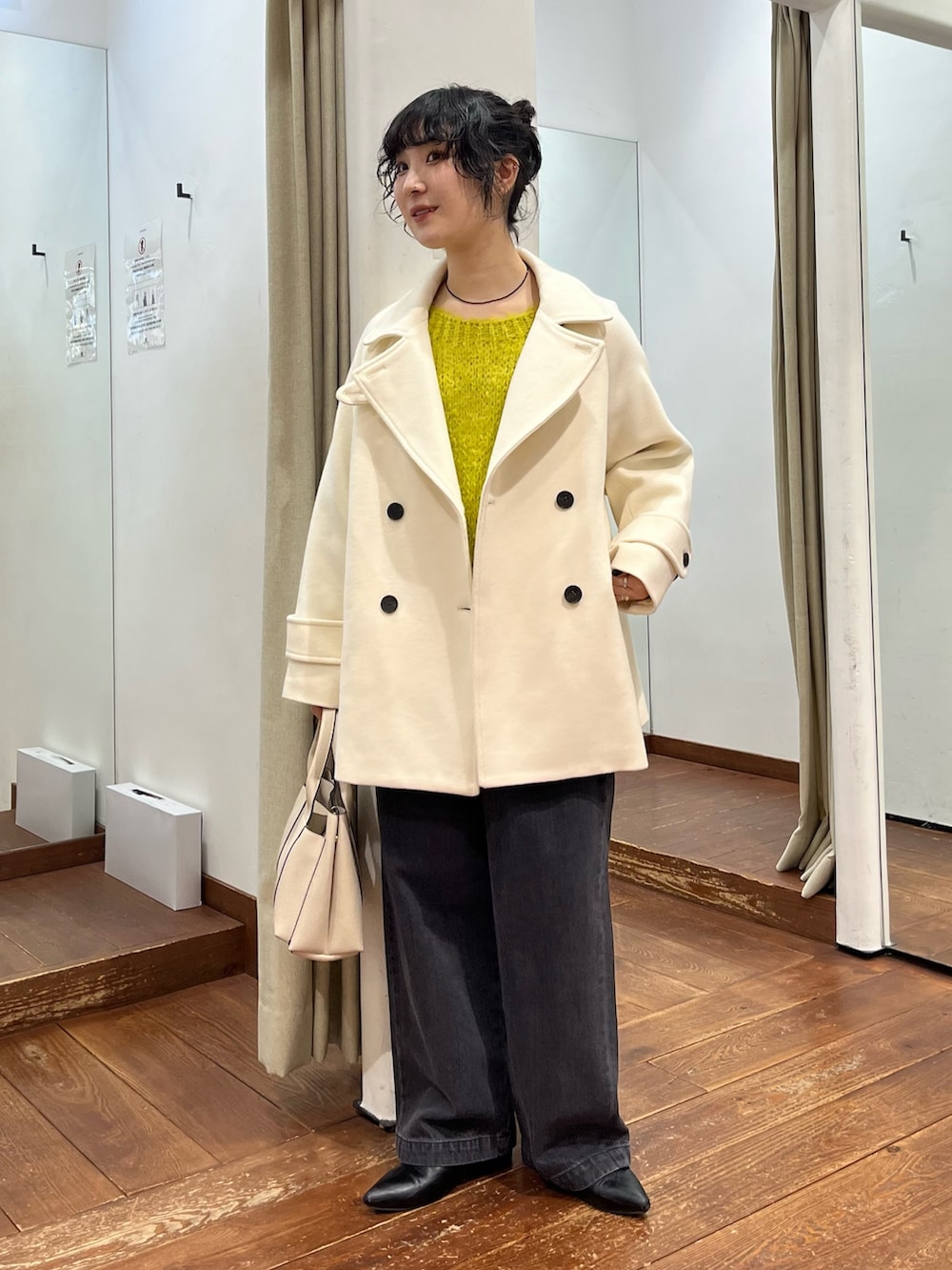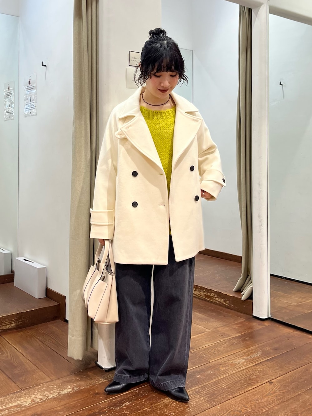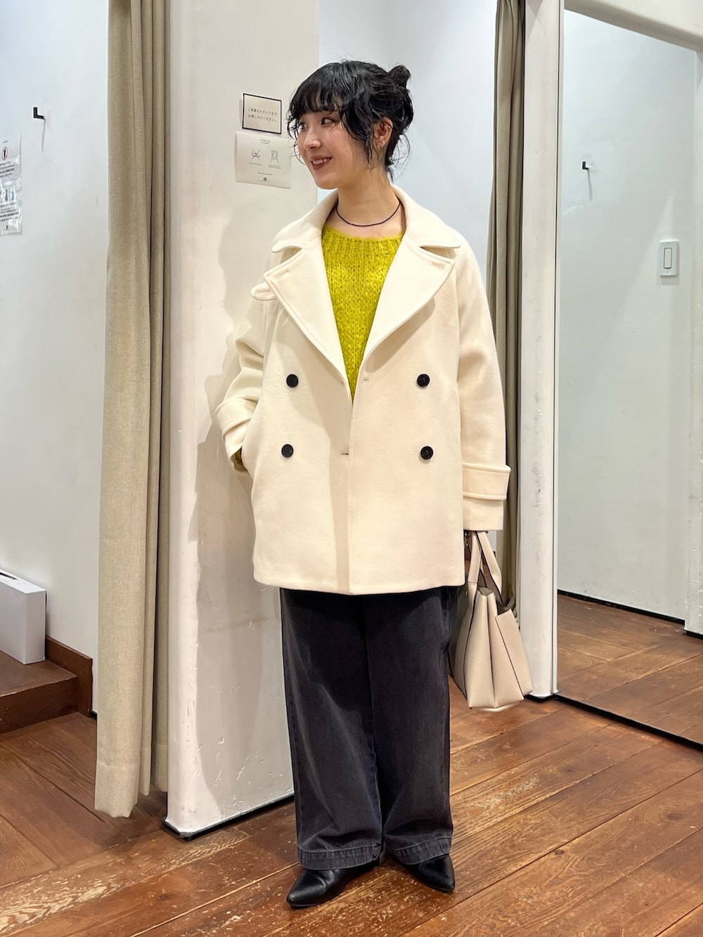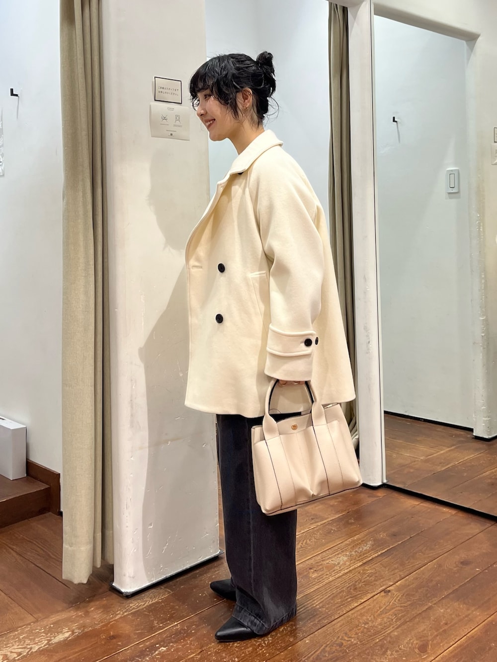 ウールの暖かみがしっかりあるPコート。白みが強いホワイトはカラー物も映えさせてくれます☁