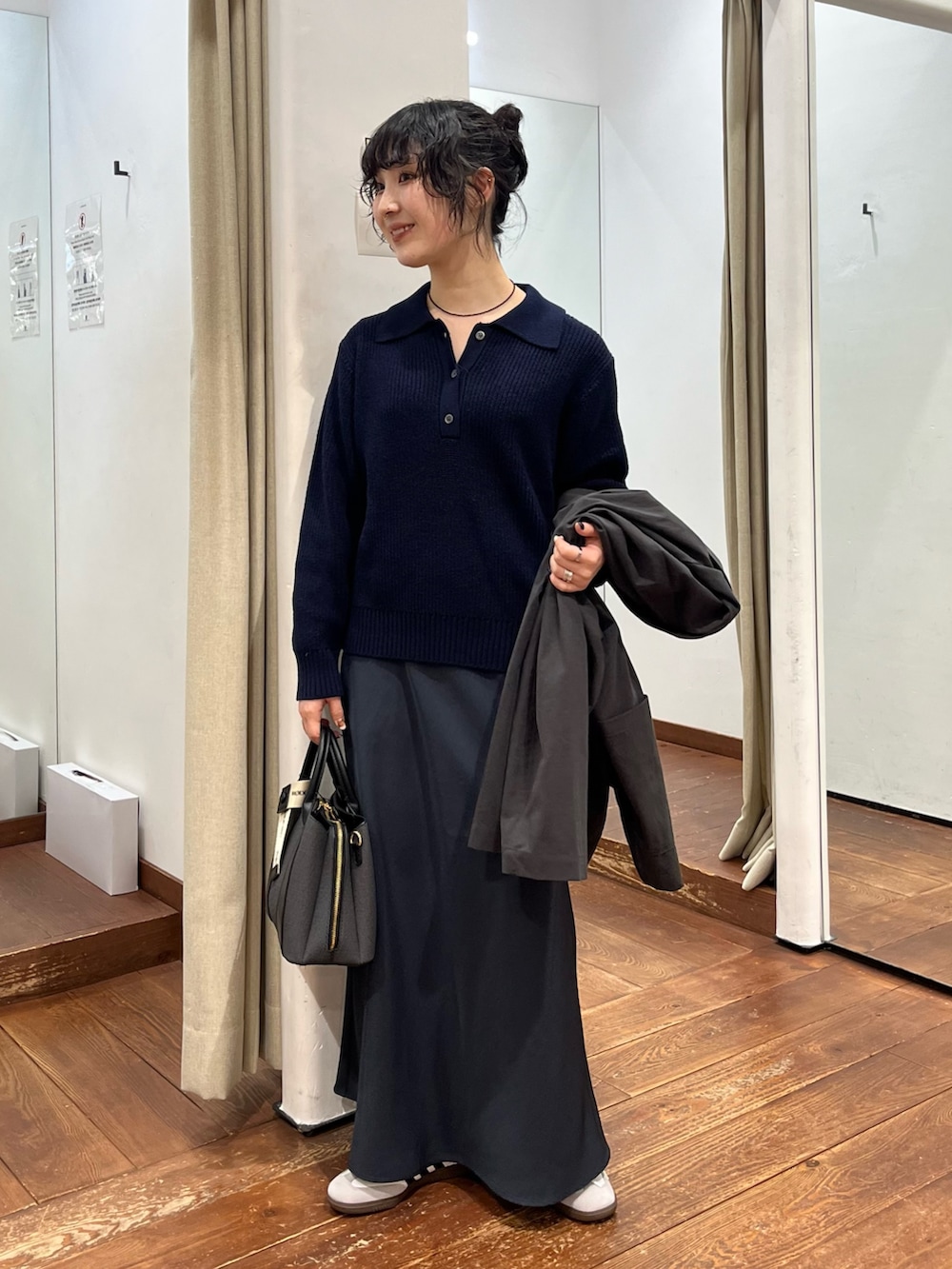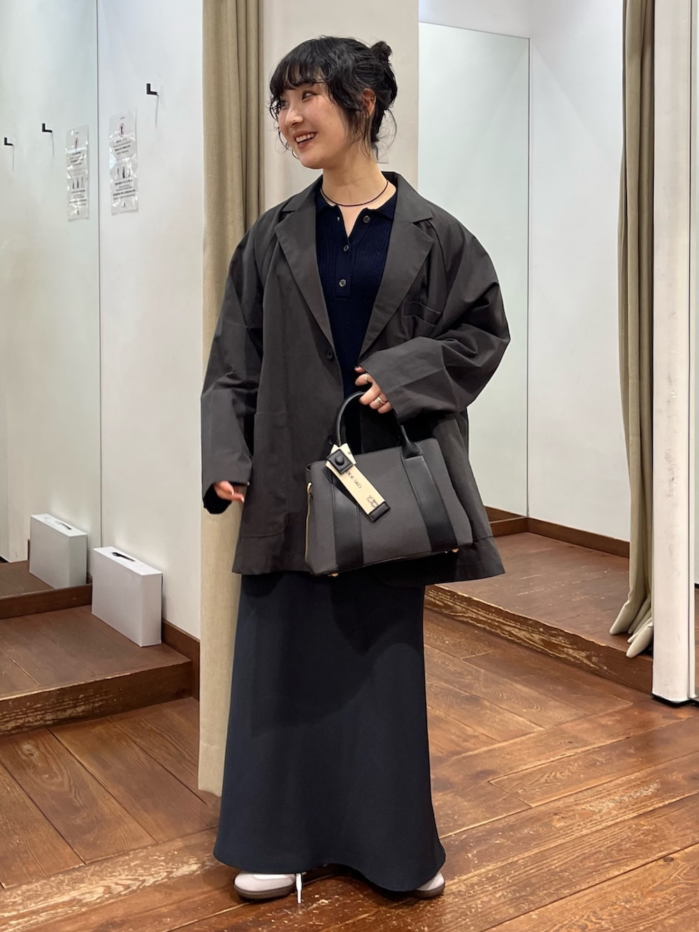 ワイドシルエットでカジュアルに抜け感あるスタイルが叶います。見た目以上にとても軽量です。肩が落ちているので、かっちり過ぎずワンピースやスカートと合わせると女性らしさあるコーデにも、、、🎀
