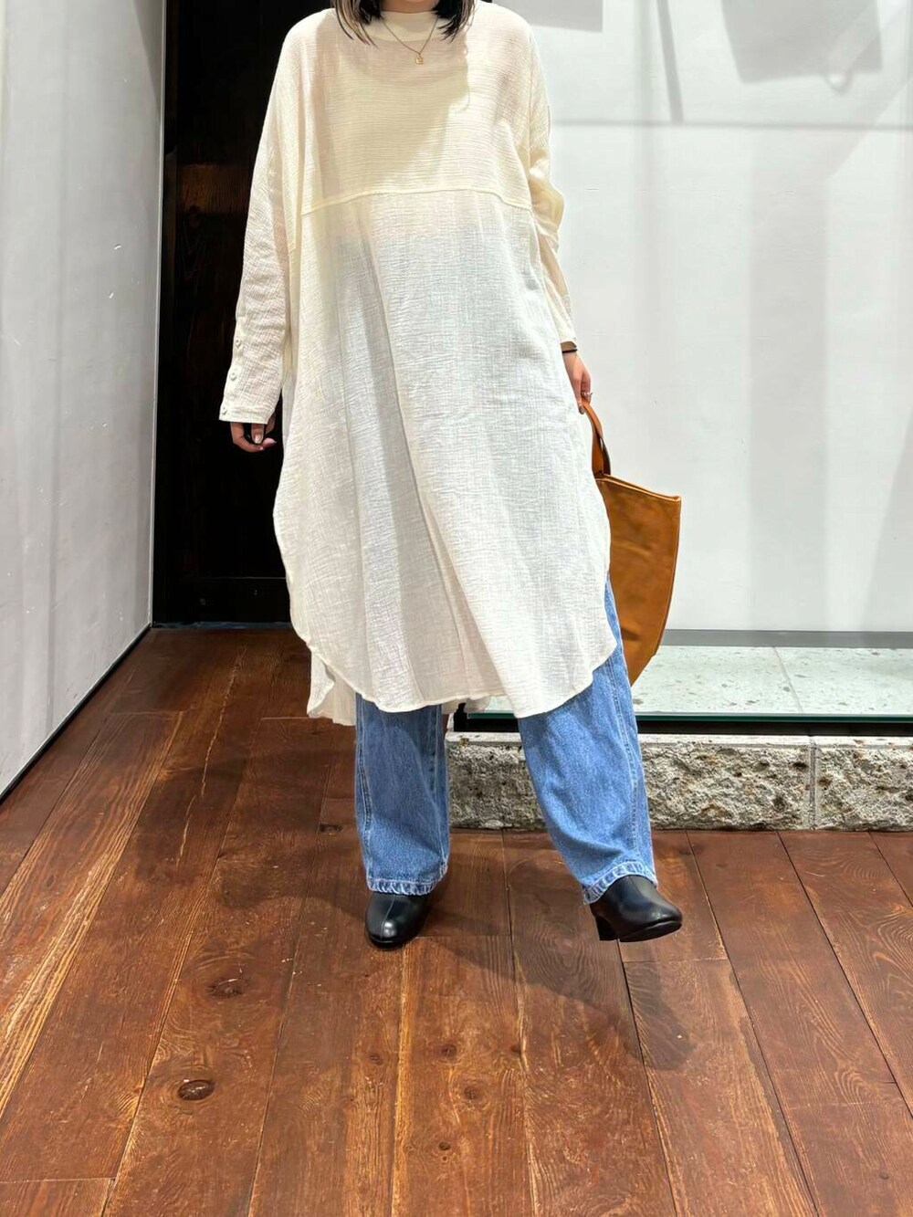 透け感があるので、レイヤードするパンツによって雰囲気も変えて着用していただけます!