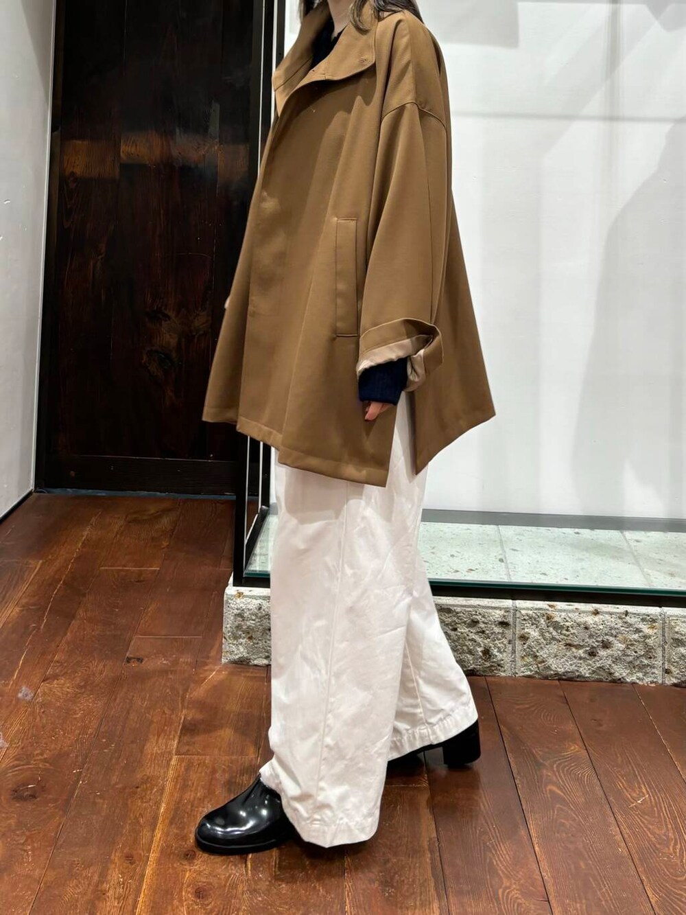 袖もゆったりで、中にニットなど分厚いトップスを入れていただいてもゴワゴワしないようになってます◎