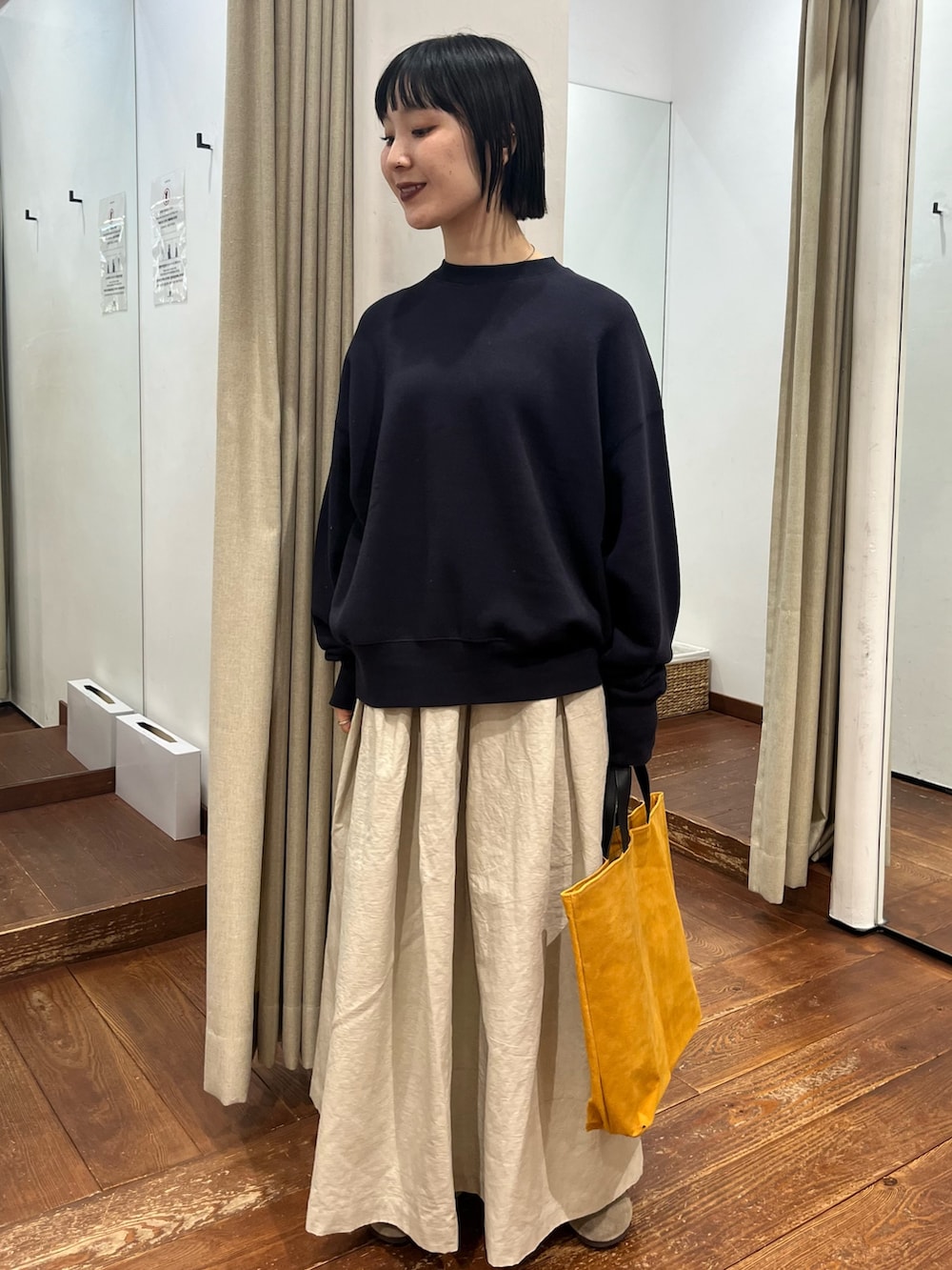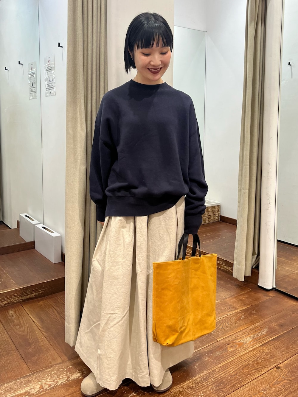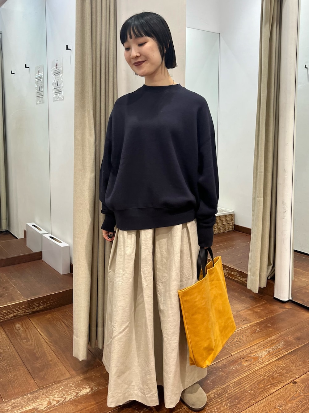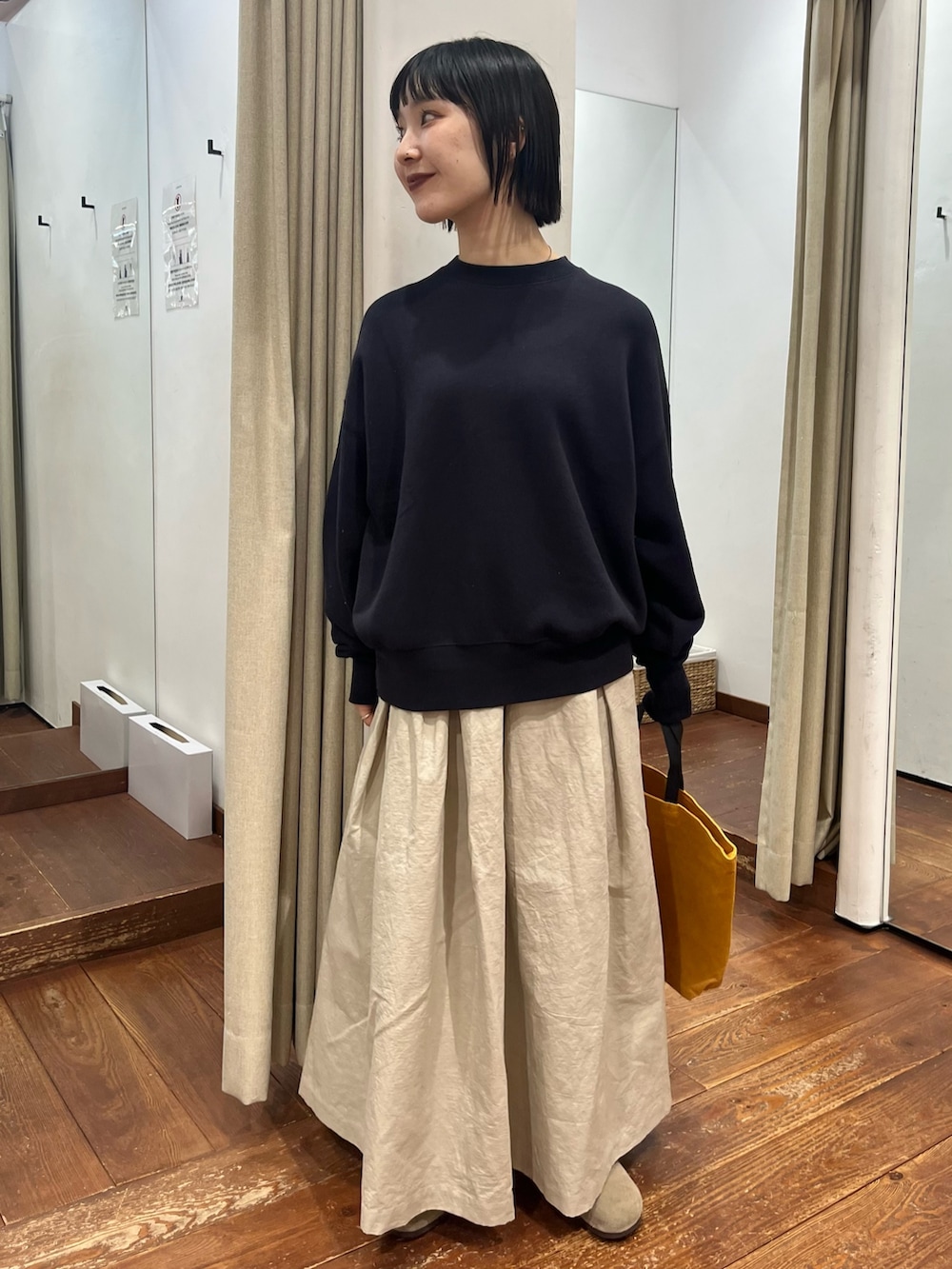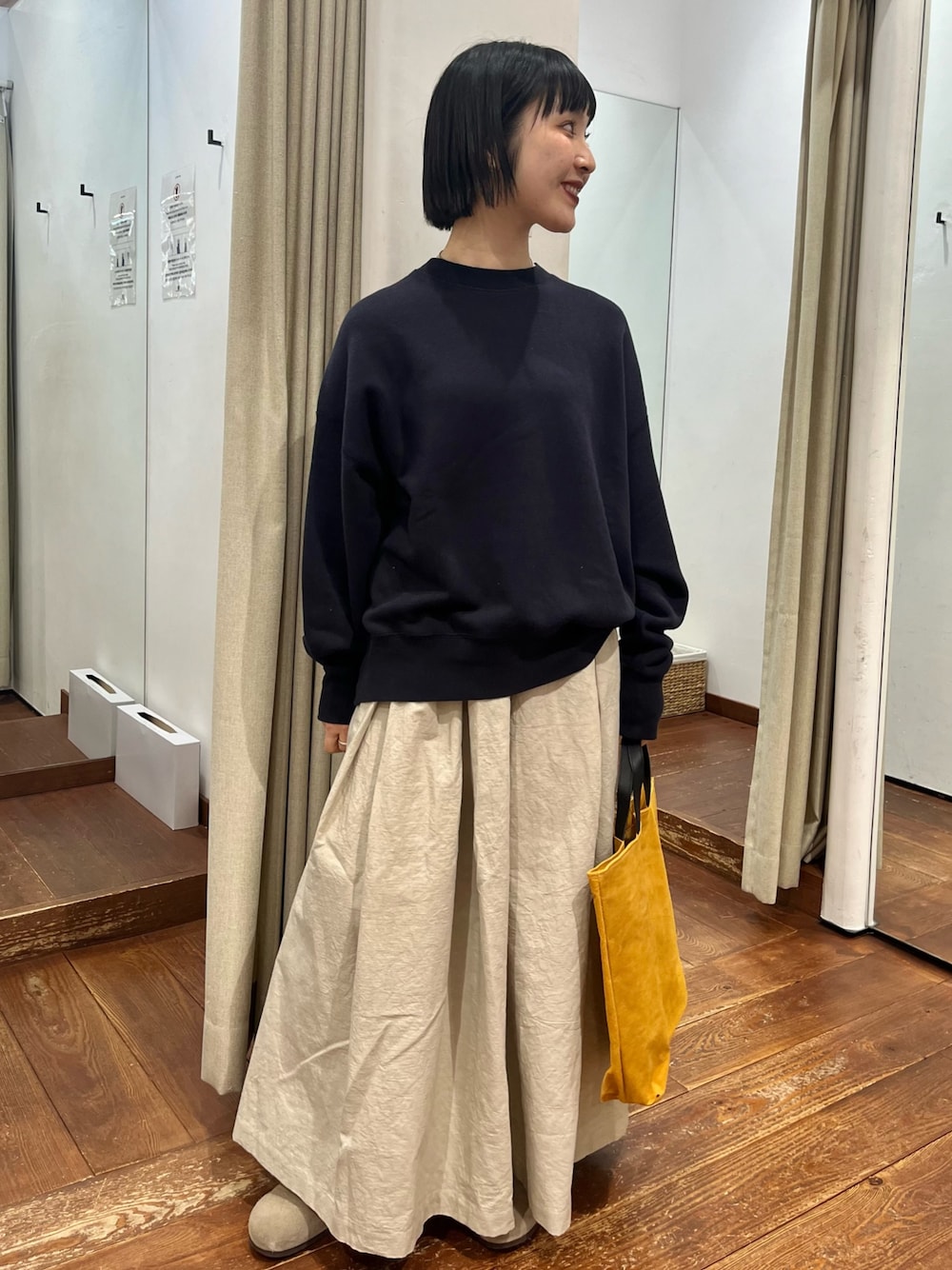 ゆるっとしたシルエットと、長めの袖がスウェットですが女性らしくて可愛いです。