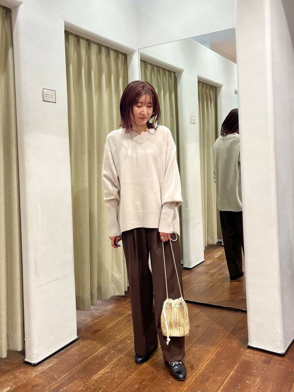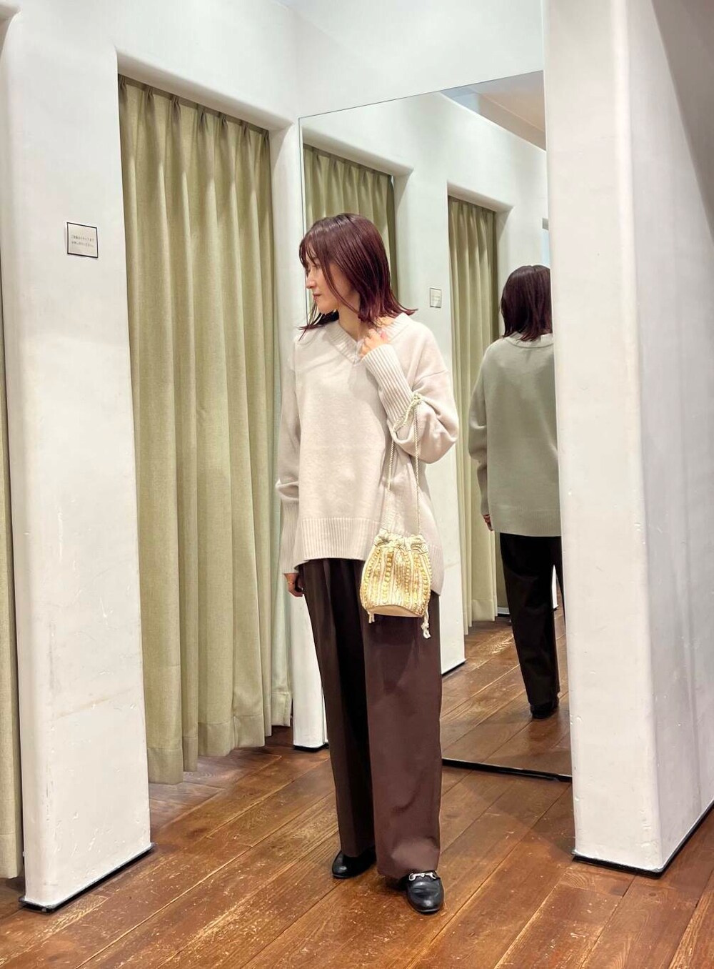 アウターは少しゆったりしたシルエットなので中のインナーも選ばす着回しがききます。
