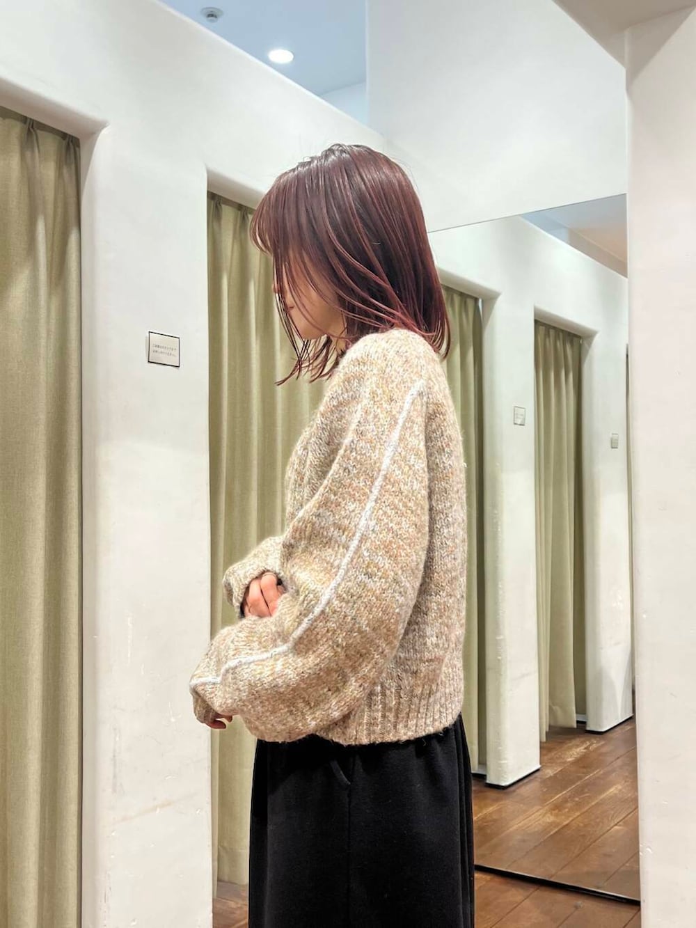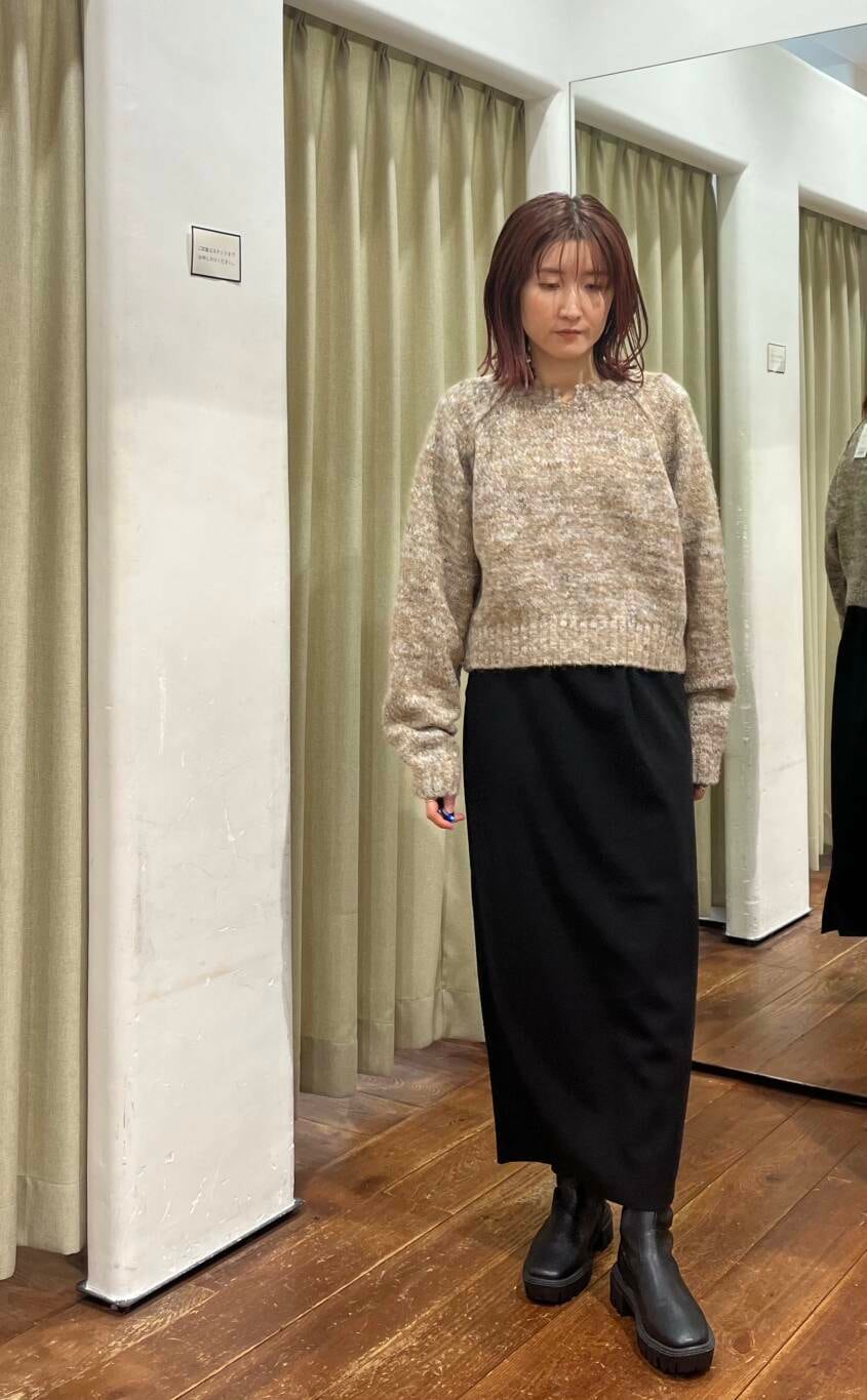 トップスはミックスの糸がポイントであたたかい風合いです。袖のステッチが可愛いです。