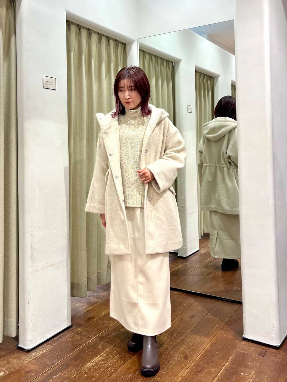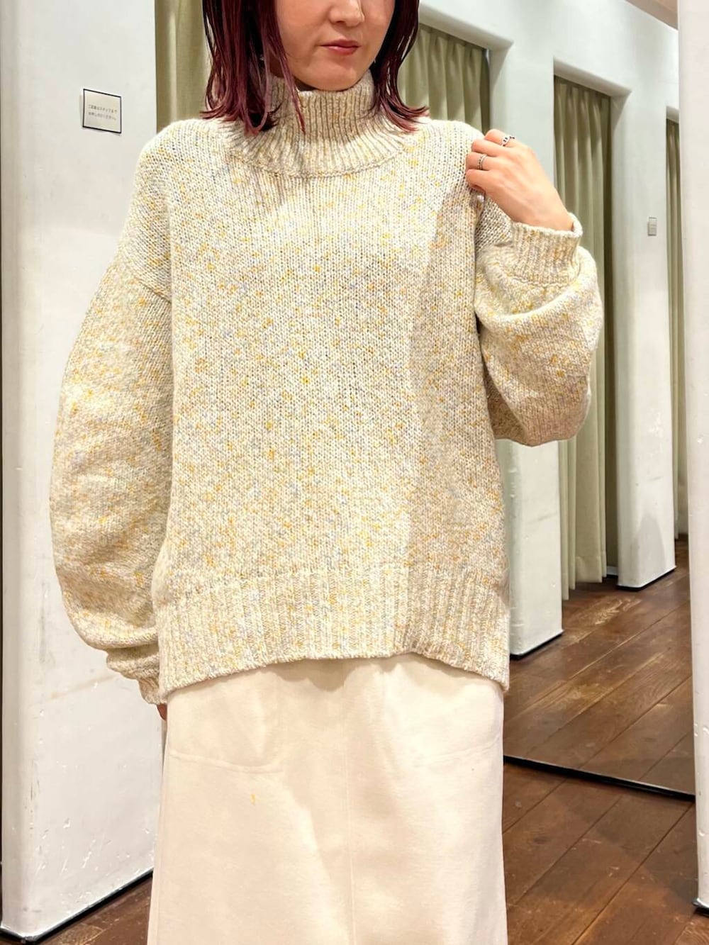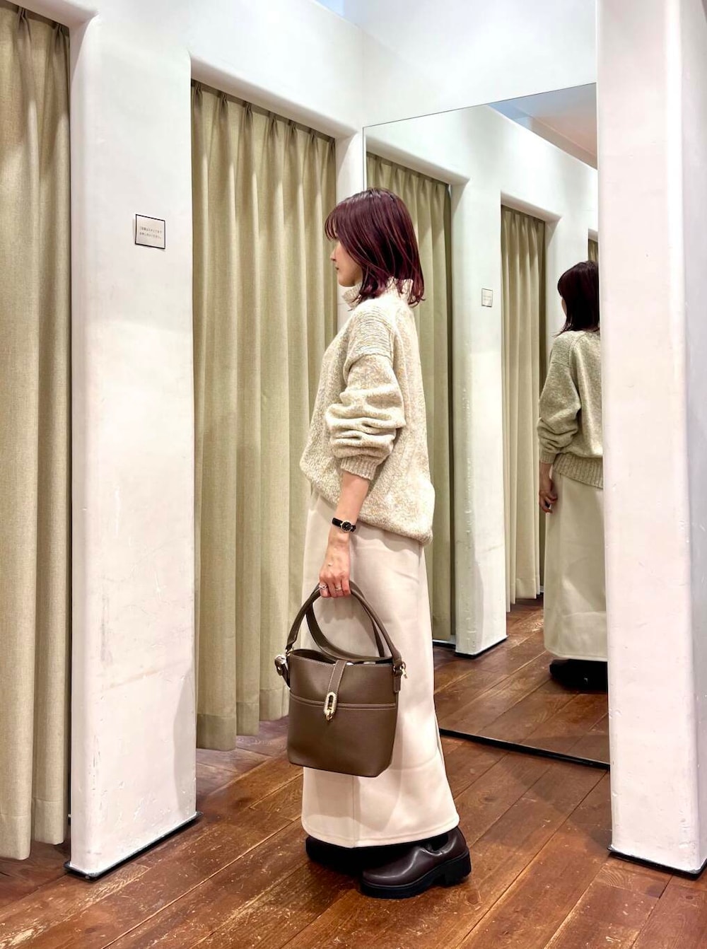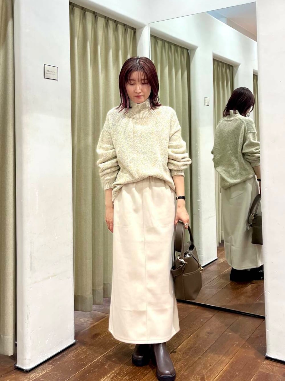 トップスにも優しいカラーのニットを合わせました。秋冬は暗めのコーデになりがちですが明るい色を合わせる組み合わせが個人的には好きです◎