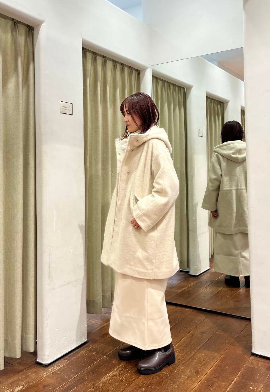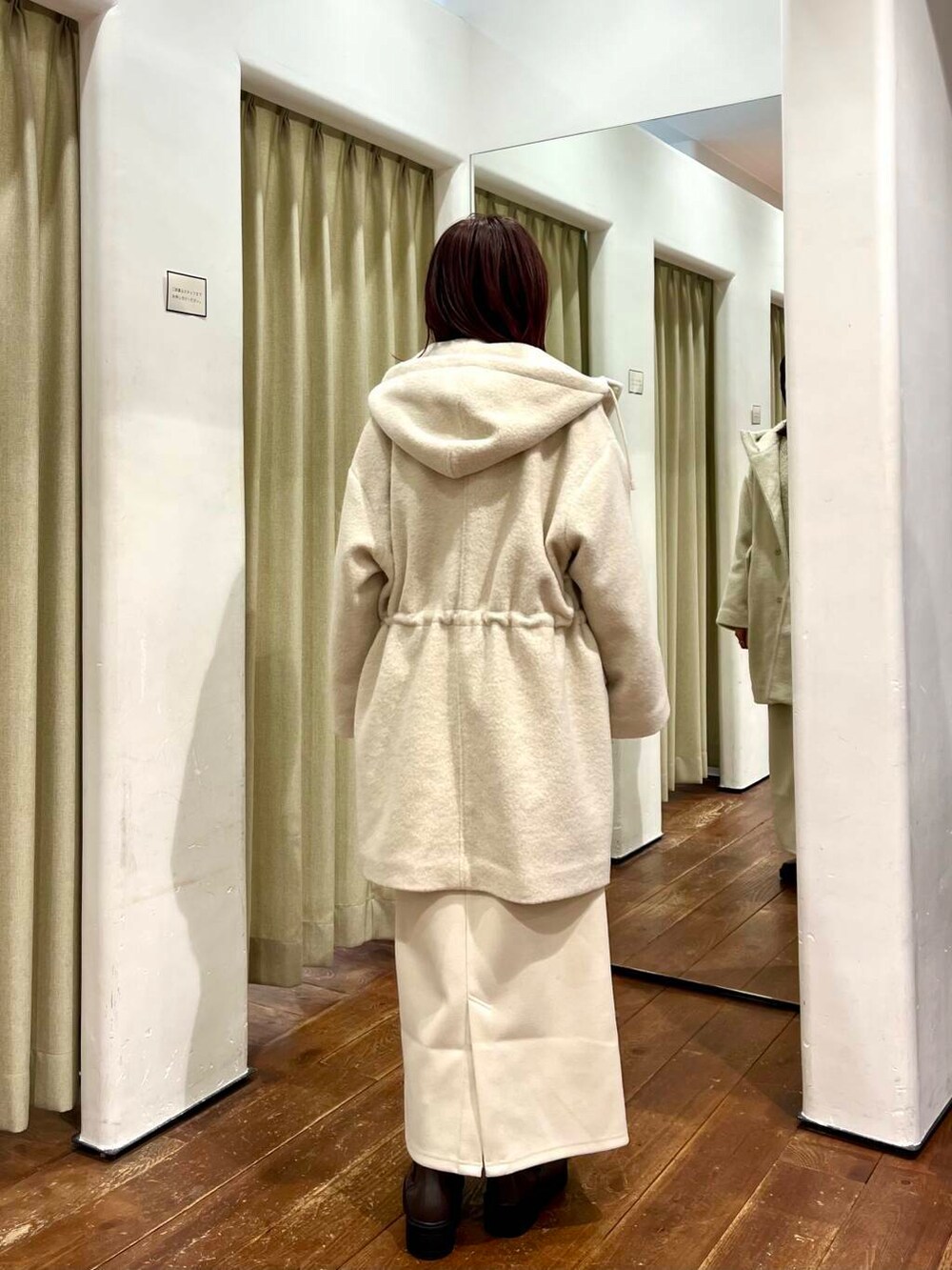 アウターはゆったりしていますが内側に紐がついていて絞るとメリハリがつくのですっきり見えておすすめです!