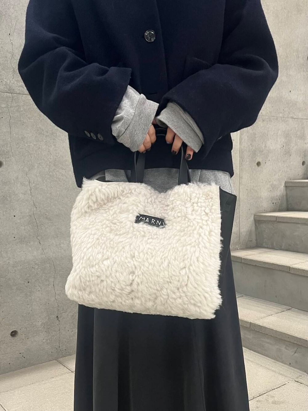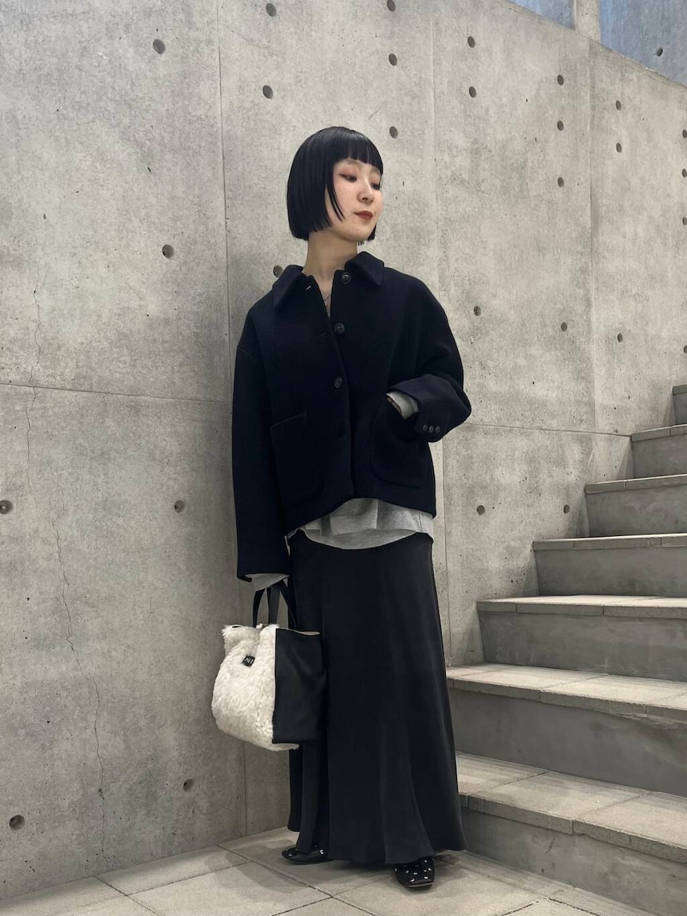 バッグは実はレザー×ボアのバイカラーです!