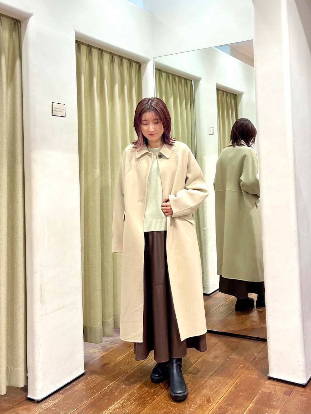 コートはsuper120を使用した上品なウールで軽くてあたたかいです。後ろのデザインも綺麗なのでおすすめの1枚です。