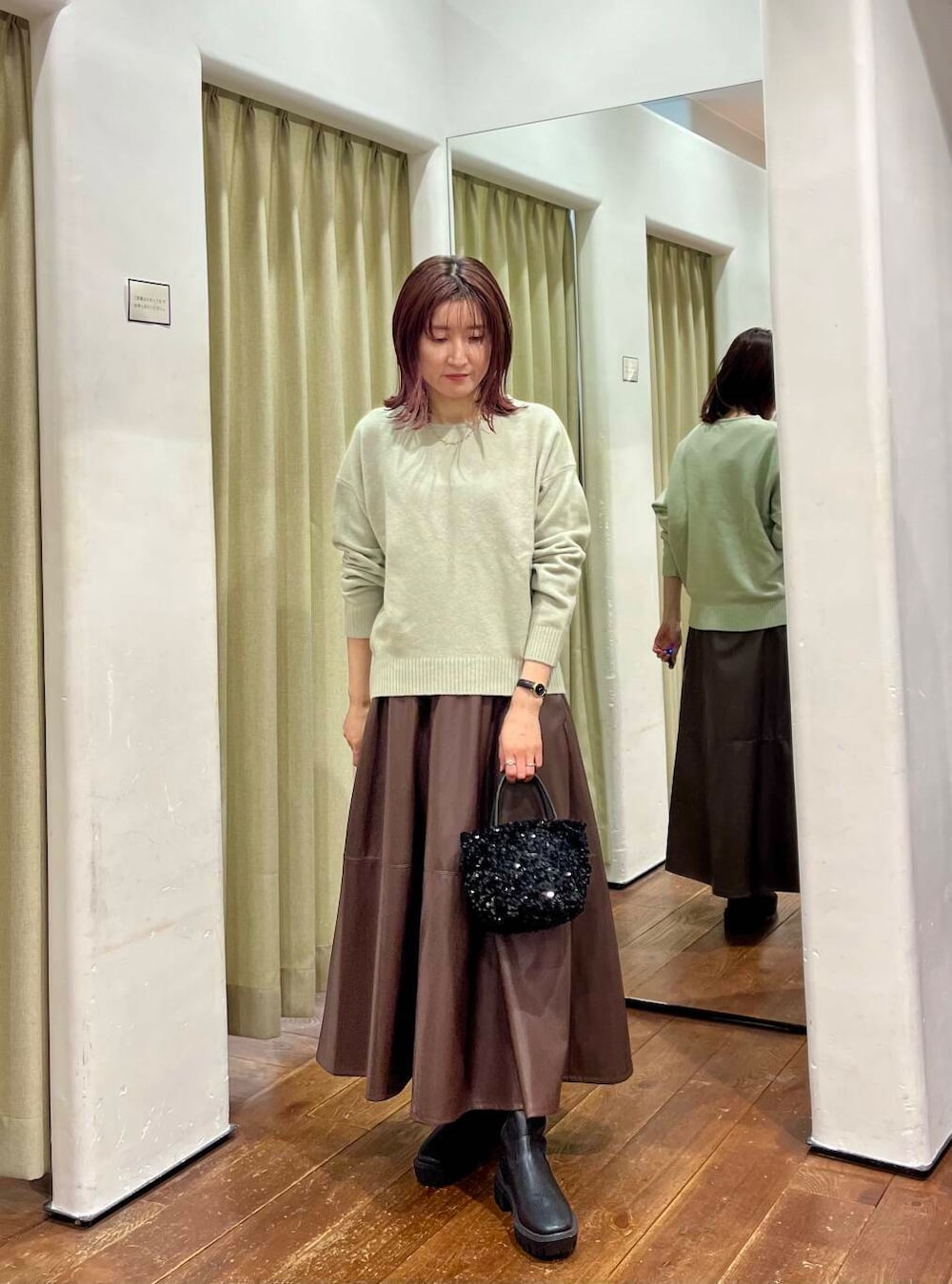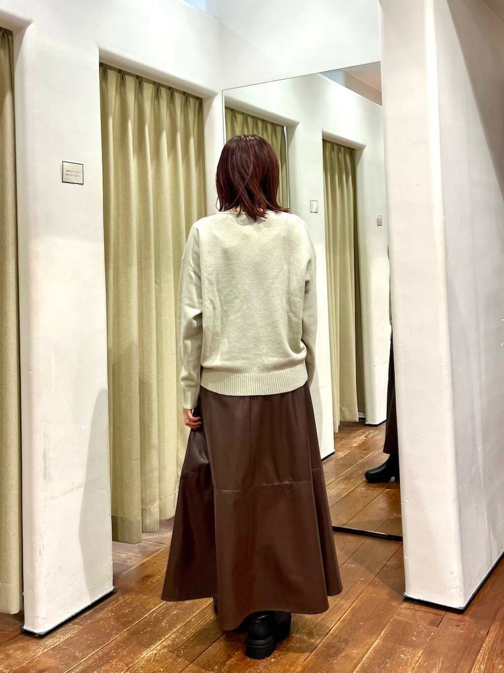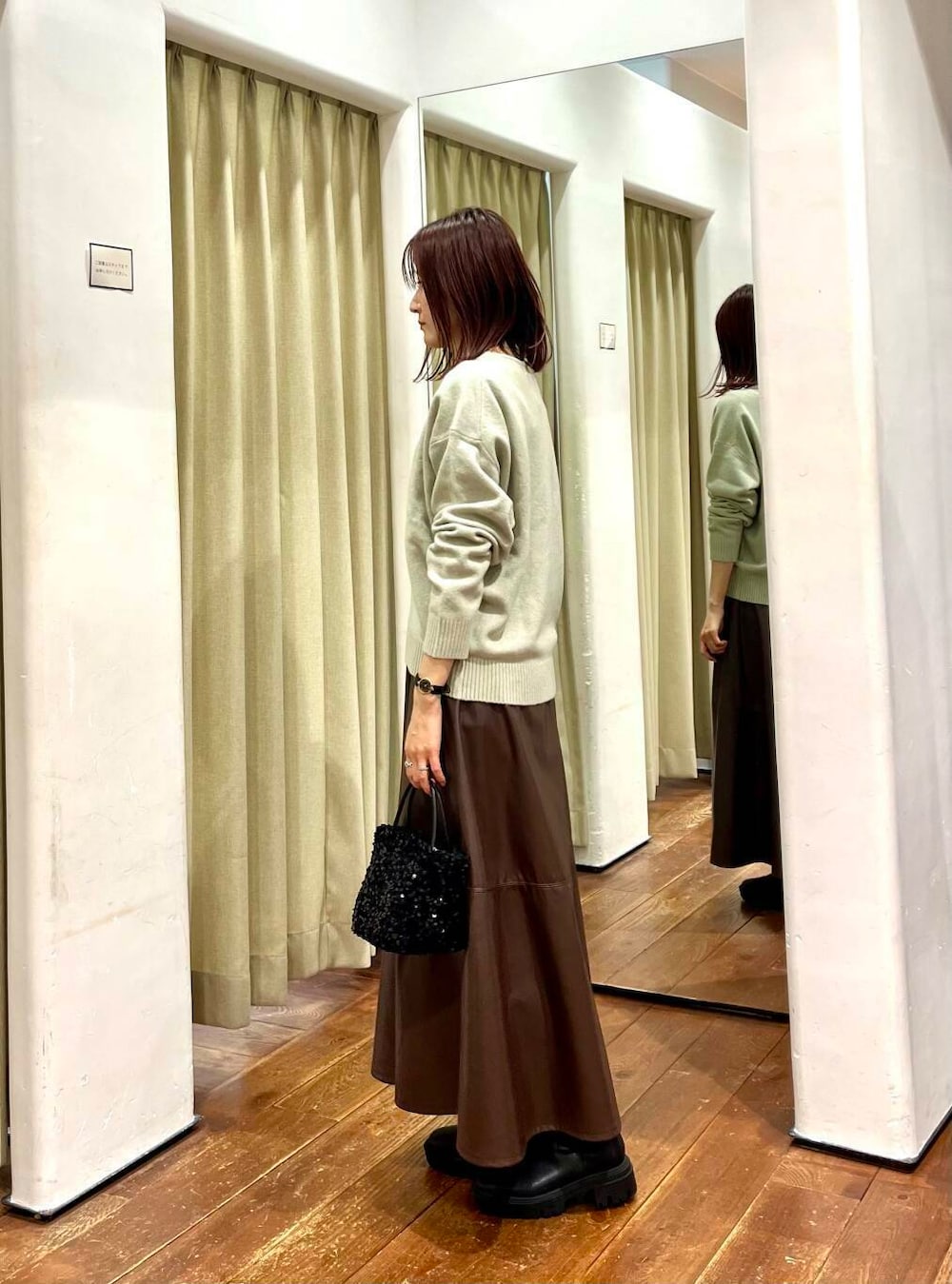 スカートはエコレザーになっており素材もしっかりしています。丈も長すぎないのでローヒールのアイテムとも合わせやすいです。