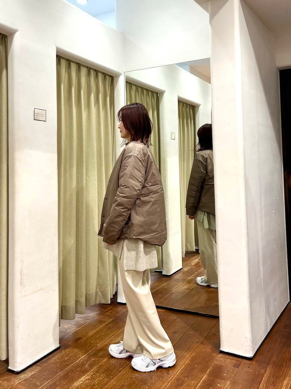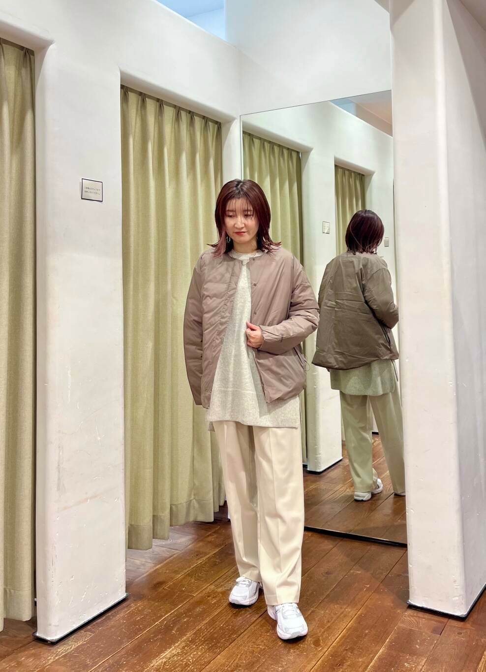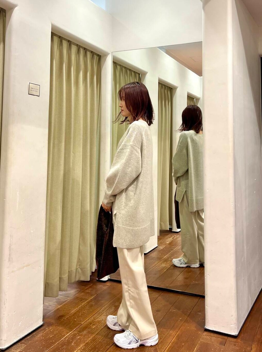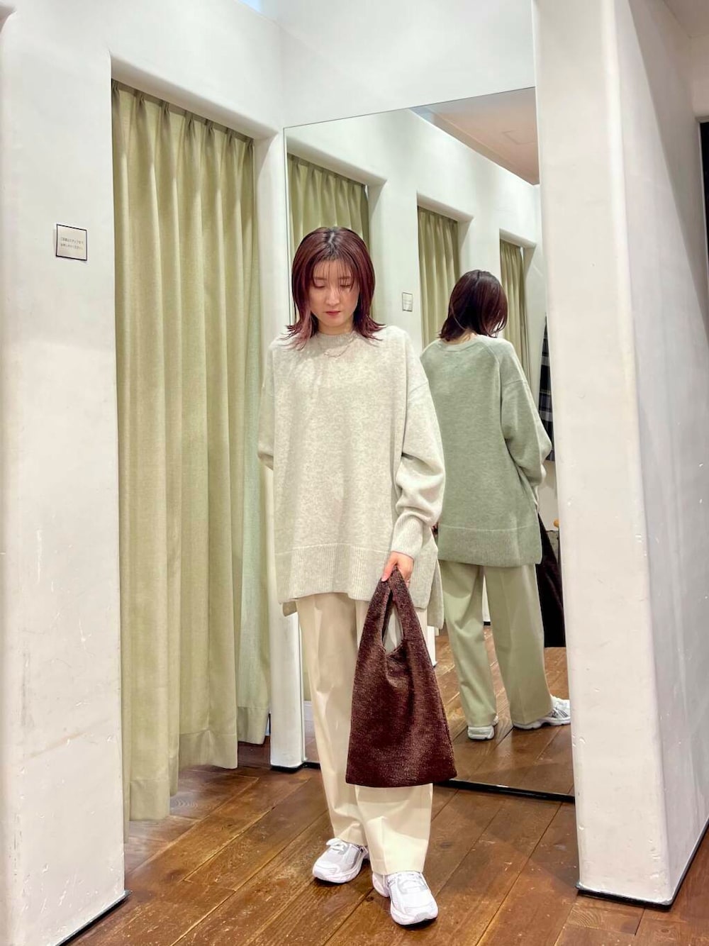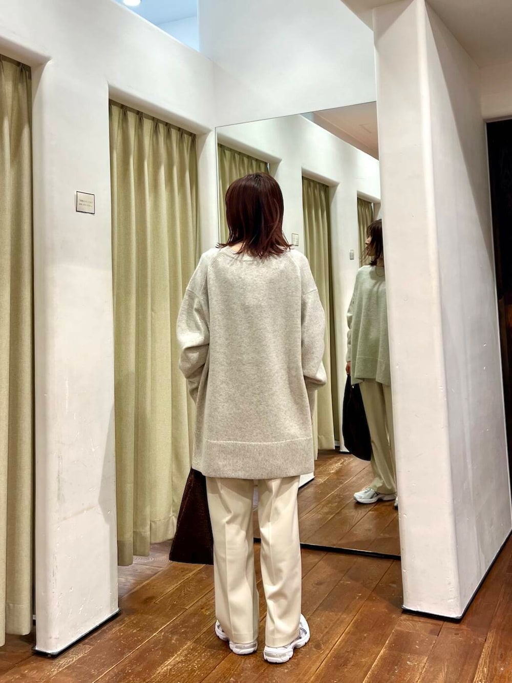 ニットはチュニック丈で長さがありますが横にスリットが入っているのですっきり見えます。おしりが隠れる長さなのであたたかさもあります◎