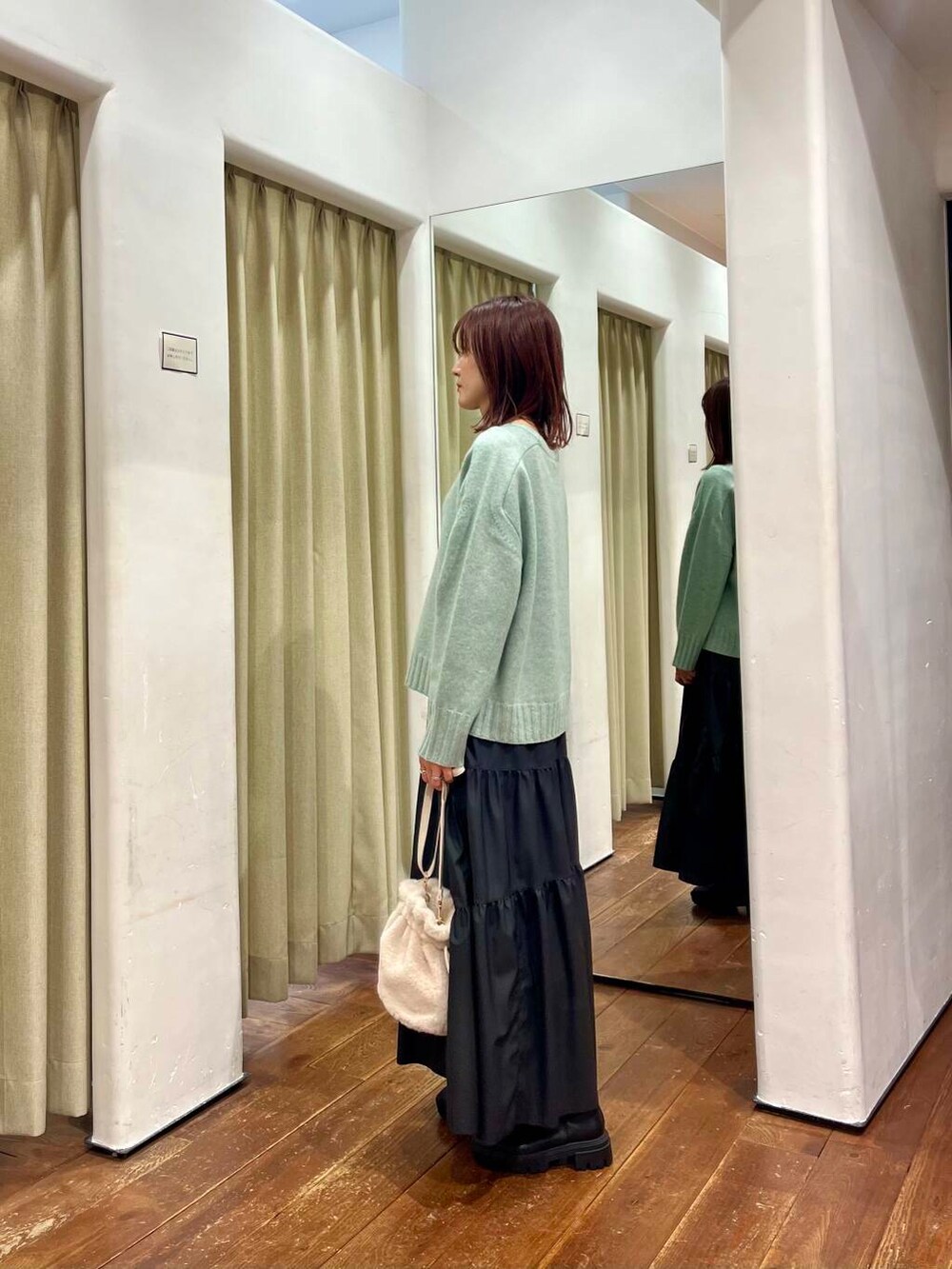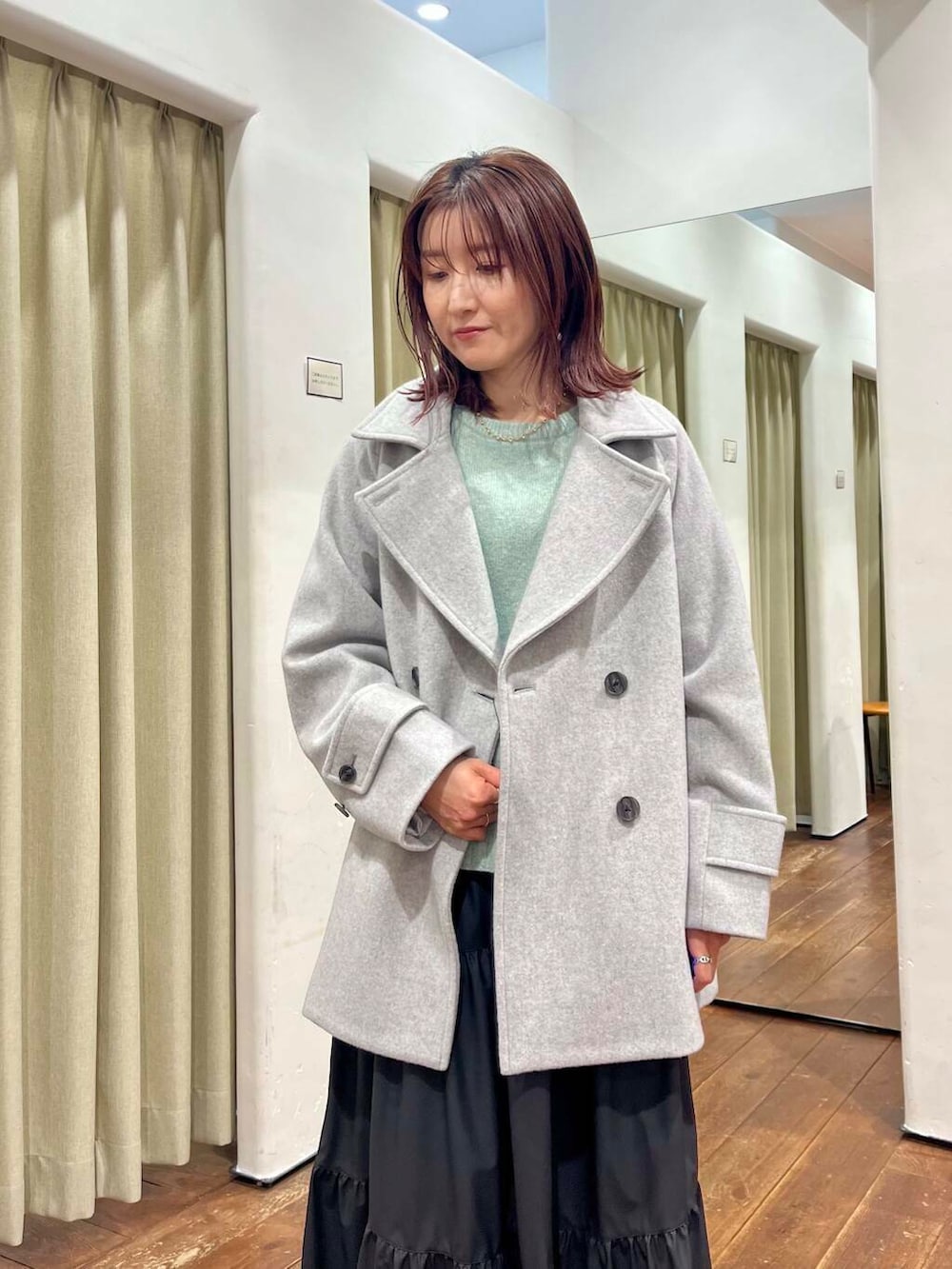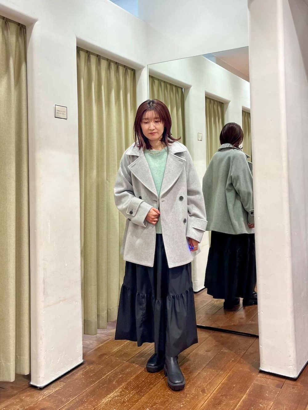 合わせたコートは裏地もありウール100%で軽くてあたたかいです。ミドル丈なので幅広い体格の方に合わせていただけます。