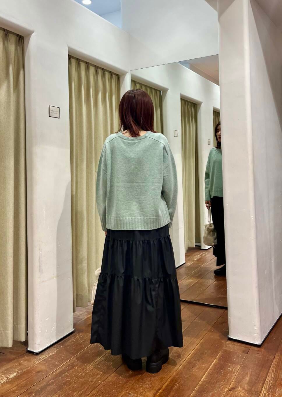 スカートはハリ感があり撥水加工がされているので機能性もありオンオフで着ていただけます。