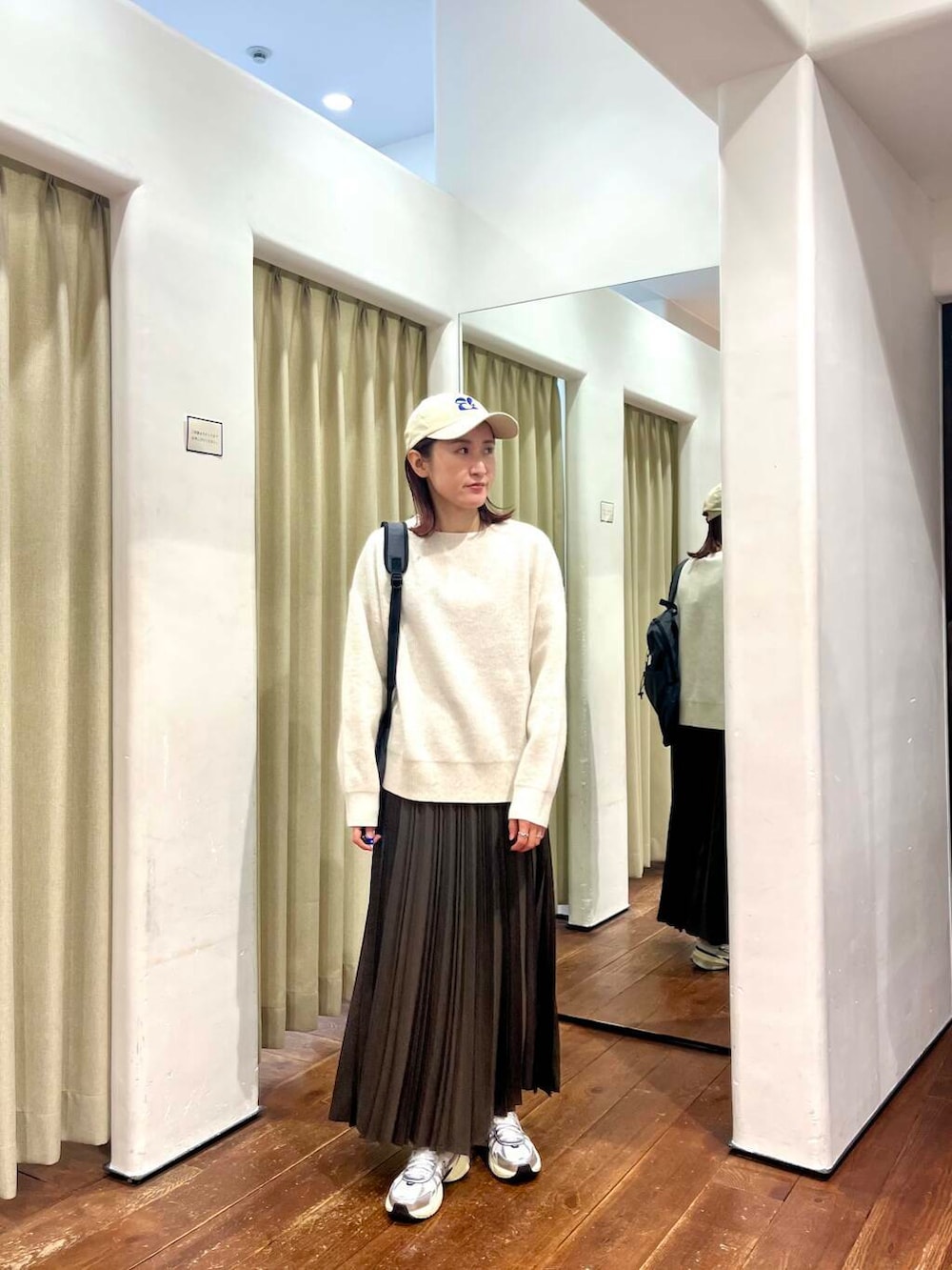 ニットは肌触りも柔らかく合わせやすい着丈です。