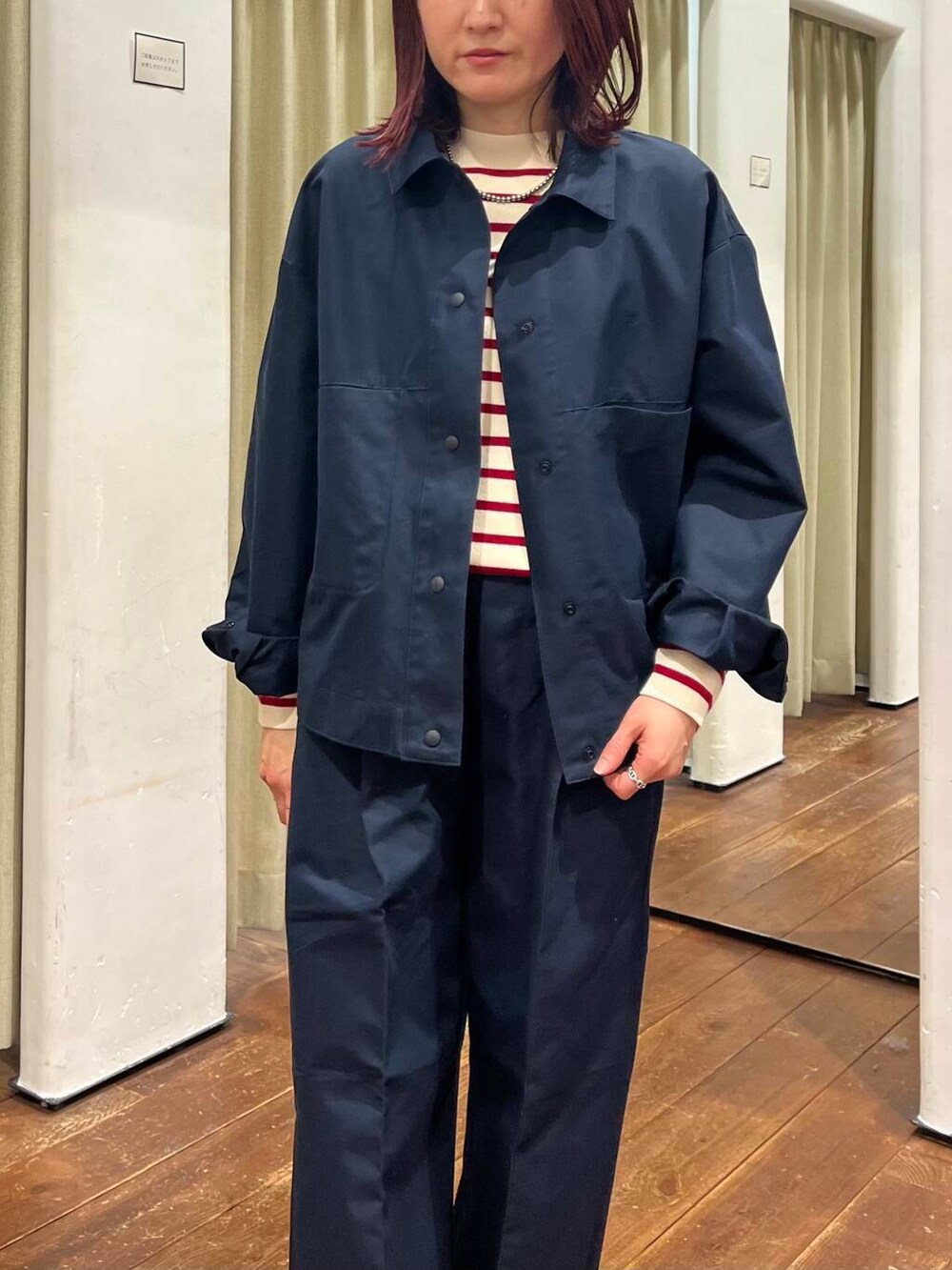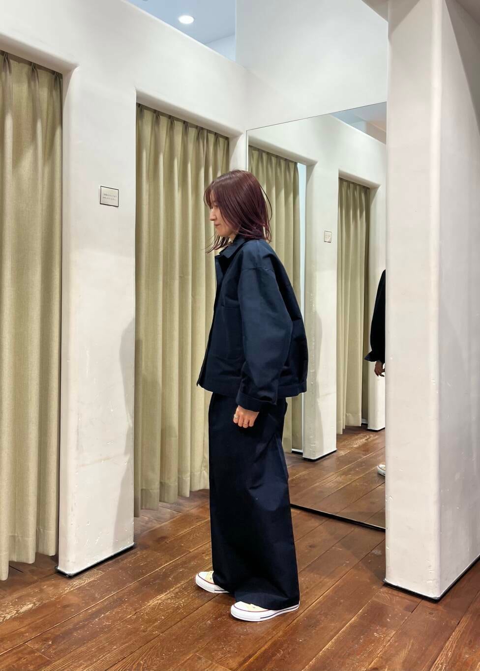 ジャケットとパンツでセットアップで着るのもおすすめです!パンツはゆったりしていますが形が綺麗なのでトップスによって雰囲気を変えていただけます◎スタッフ人気も高いアイテムです。