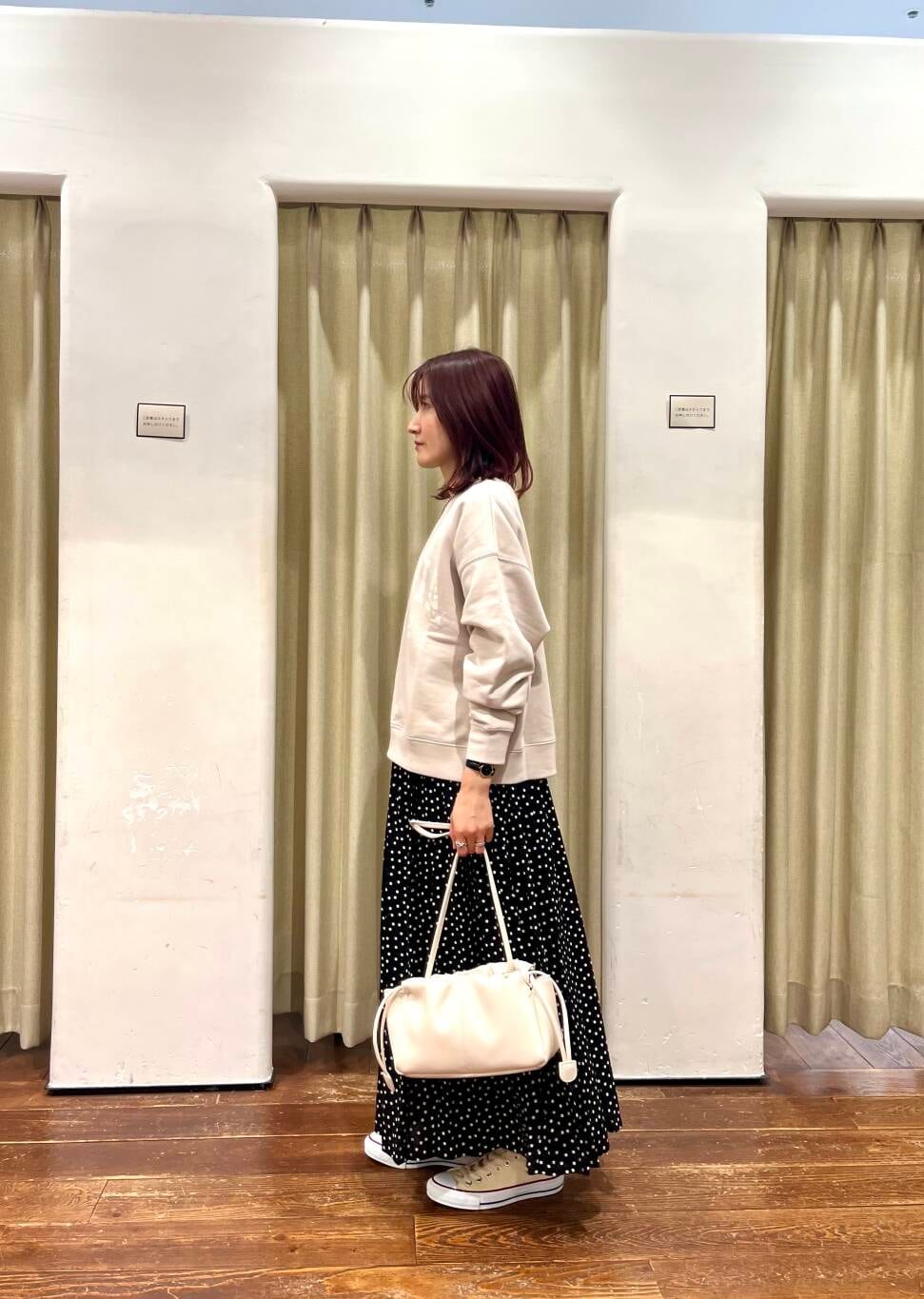 以前も人気だったかぐれのドットスカートと合わせました。ウエストもゴムなので穿き心地も良いです。