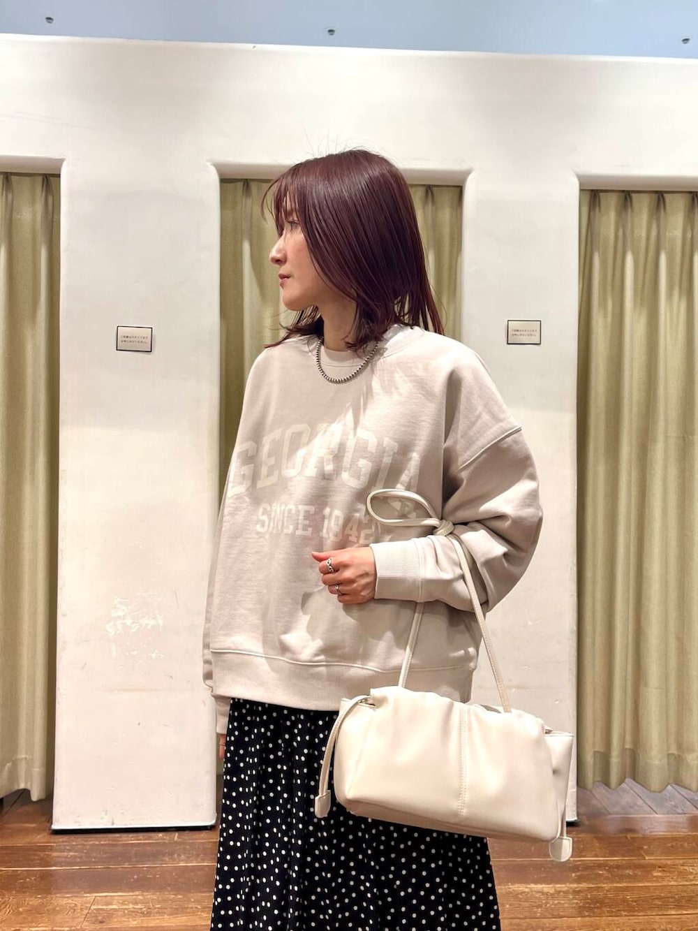 柔らかいカラーのスウェットはゆったりしたサイズ感でボトムスも色々合わせやすいです。