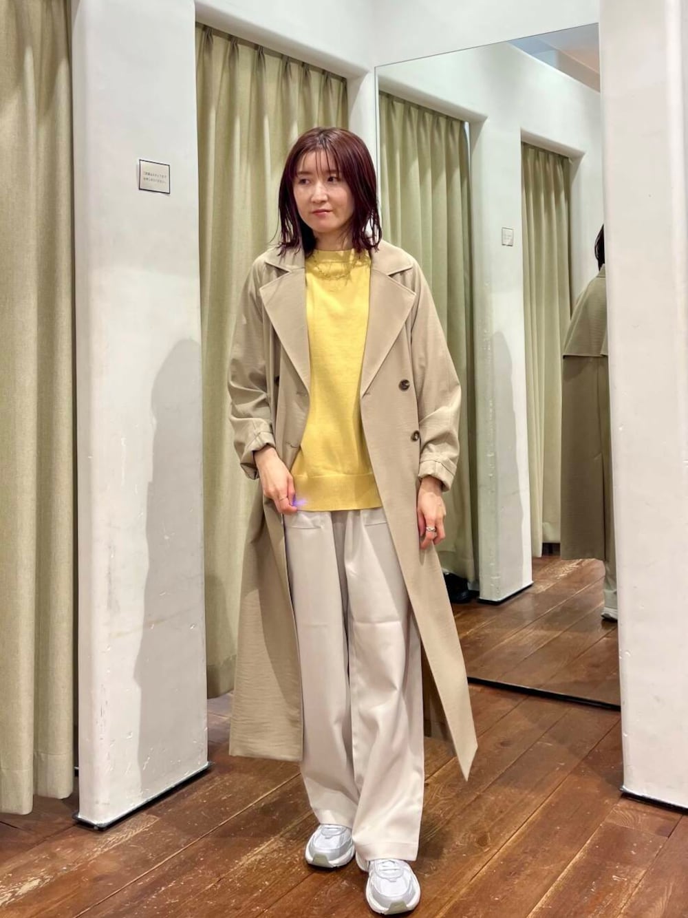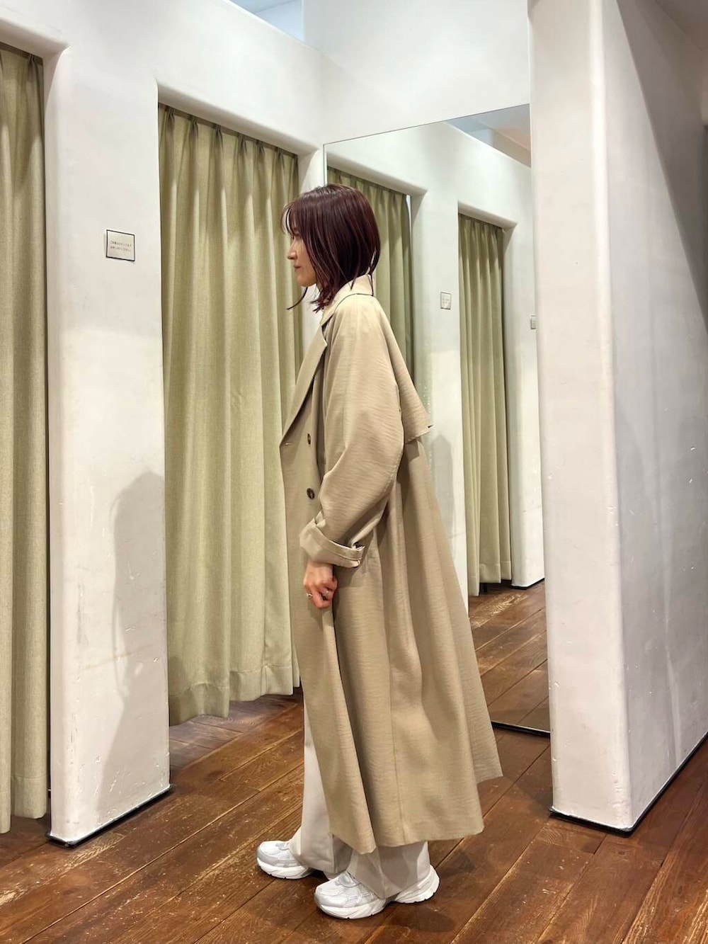 ゆったりしていますが落ち感もあるので広がらず綺麗です。防花粉・撥水・UVカットの機能付きでこれからの時期におすすめです◎