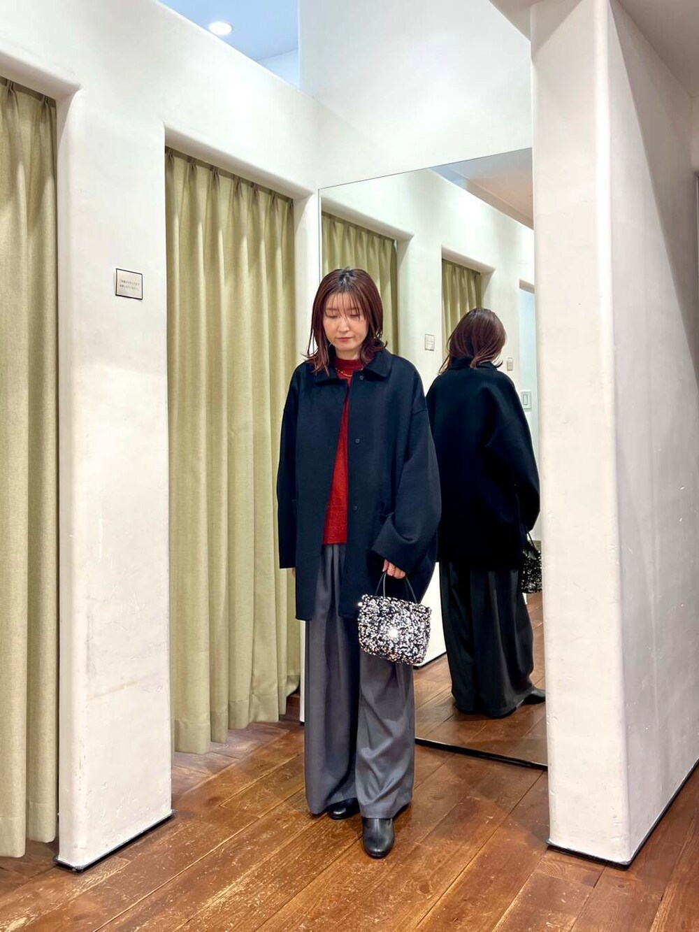 かぐれのコートはブラックが再入荷しています。ウール100%であたたかく風合いも良いです。