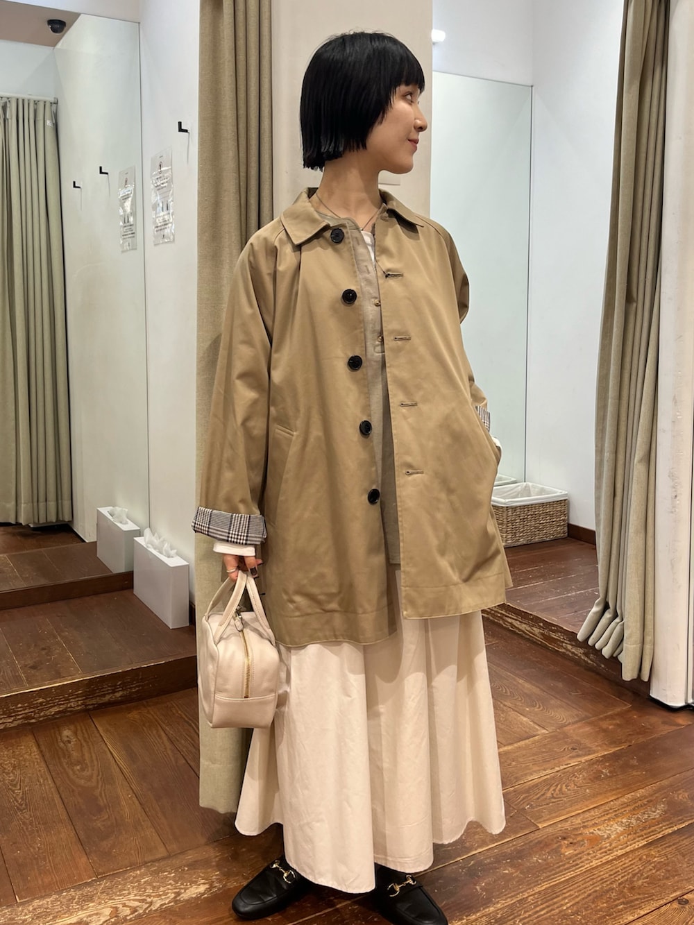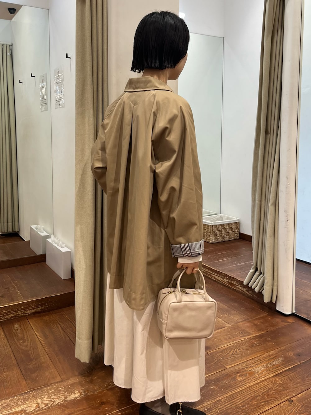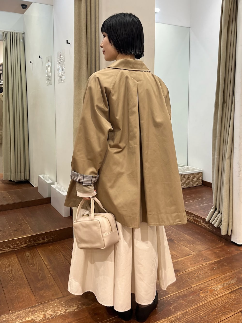 背中にタックが入っており、立体的なAラインシルエットが女性らしくて◎