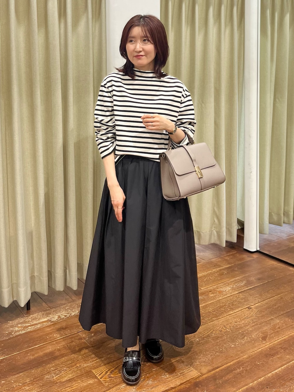 スカートはボリュームがありますが、広がり過ぎずすっきりした着丈なので着回しもきいておすすめです!