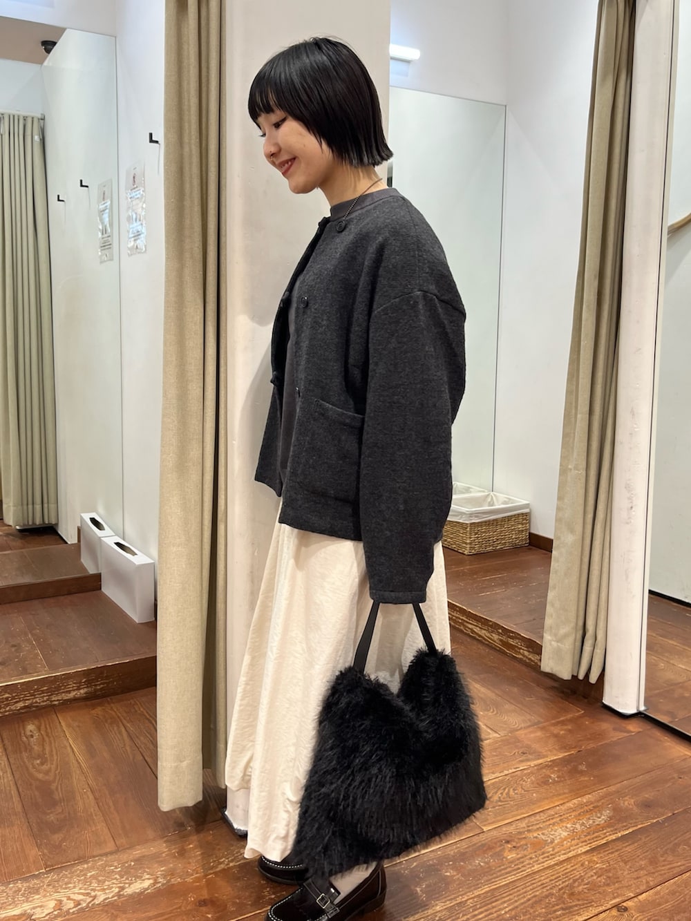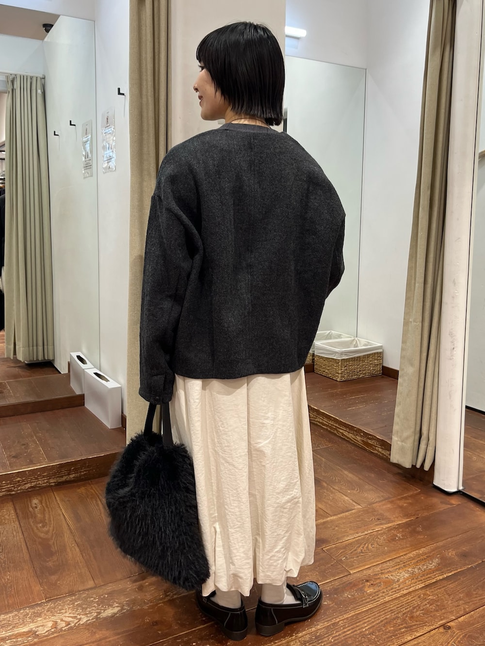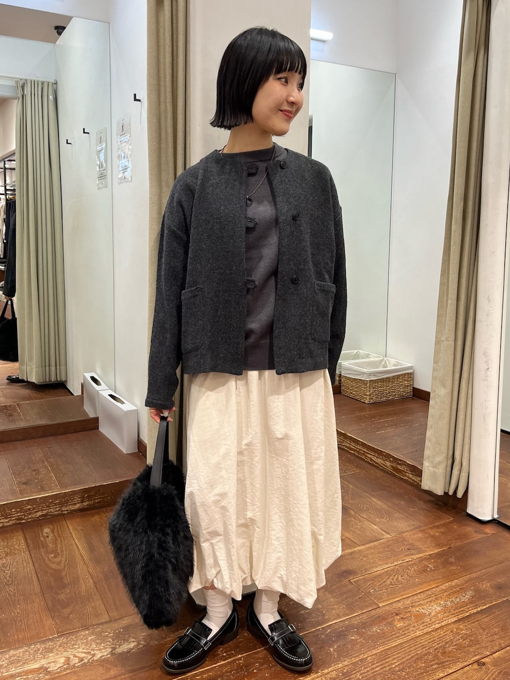 ウールの風合いが上品で、起毛感が少ないのでモコモコしにくくすっきりします。
