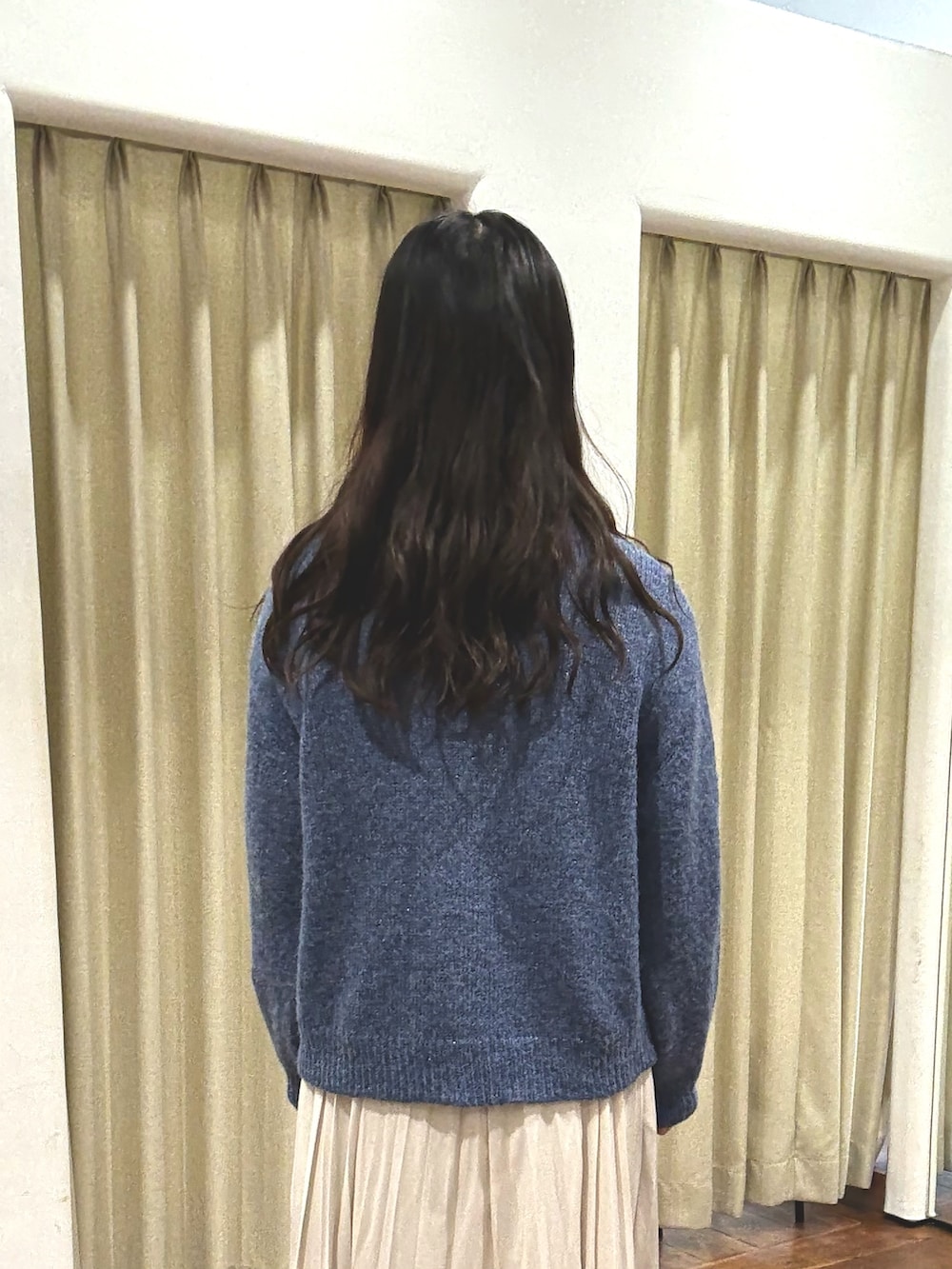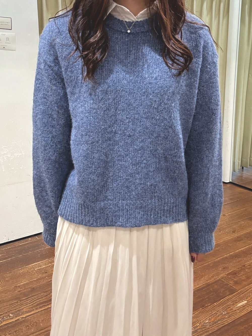 トップスは、程よいラメと丈感が可愛いDOORSのニットを着用しております。可愛すぎずシンプルすぎないので一枚で様になります。