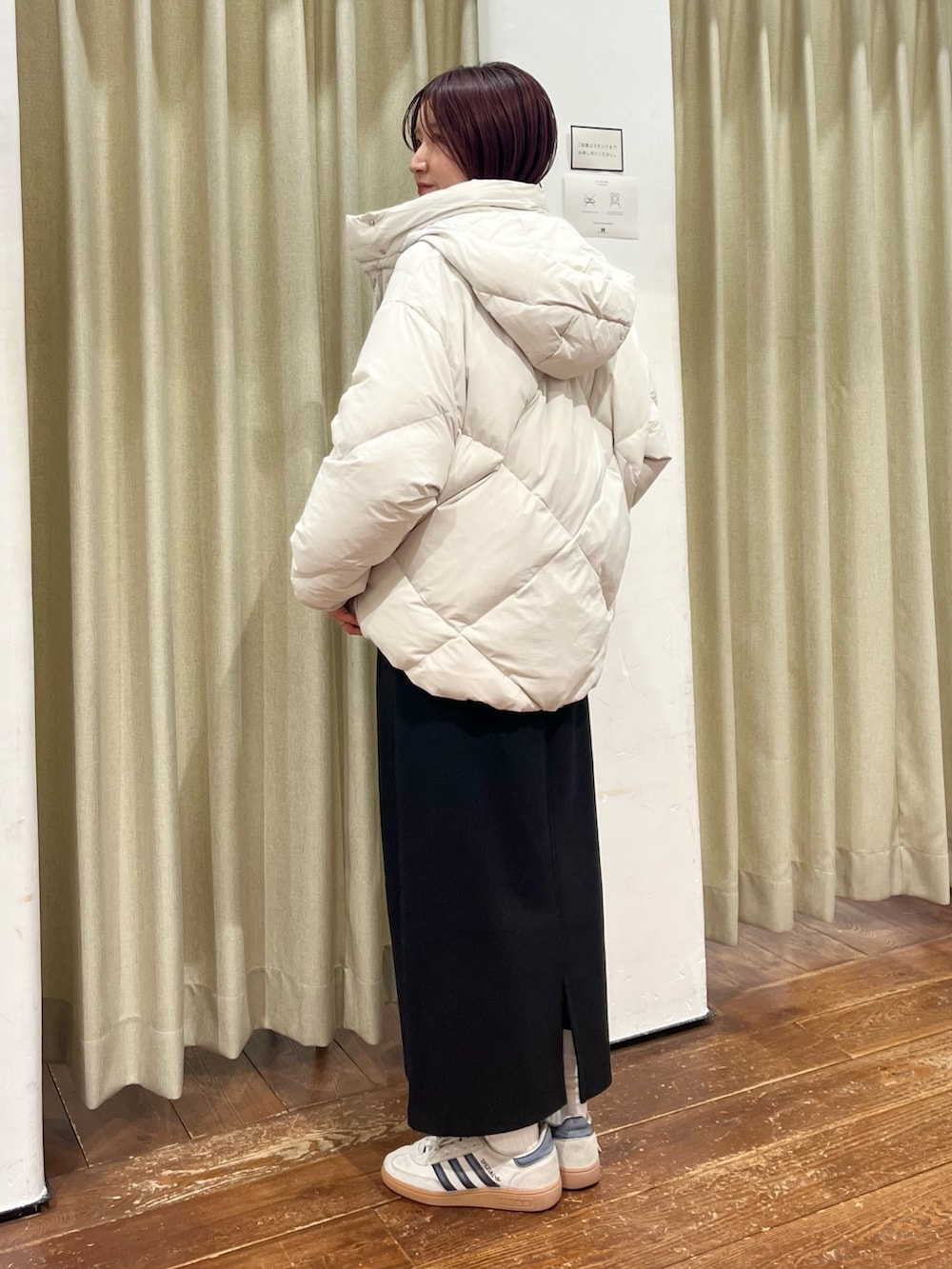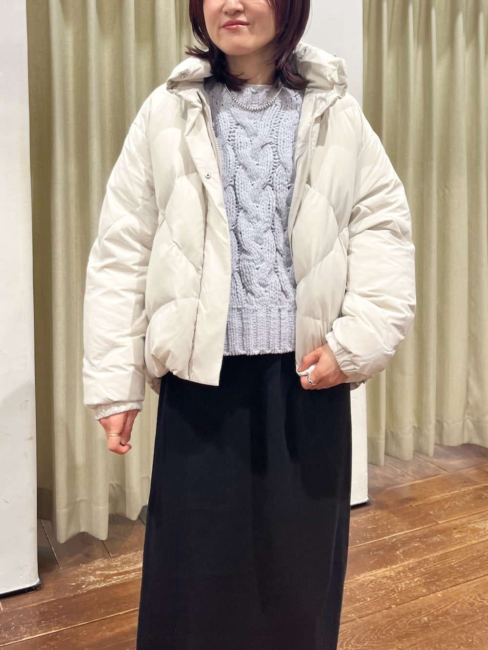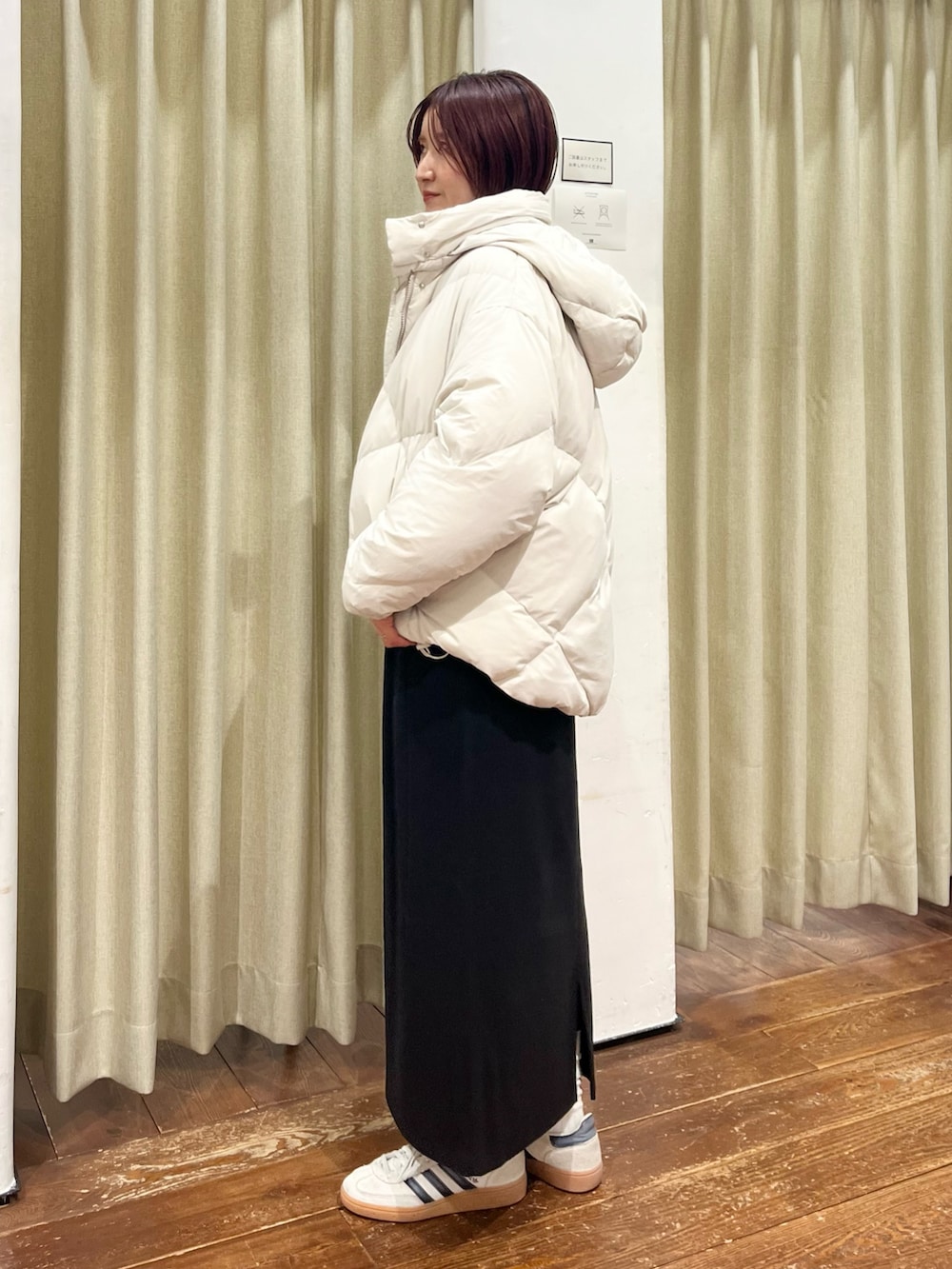 フロント部分が短めなのでスカートやボリュームのあるボトムスとの相性も◎