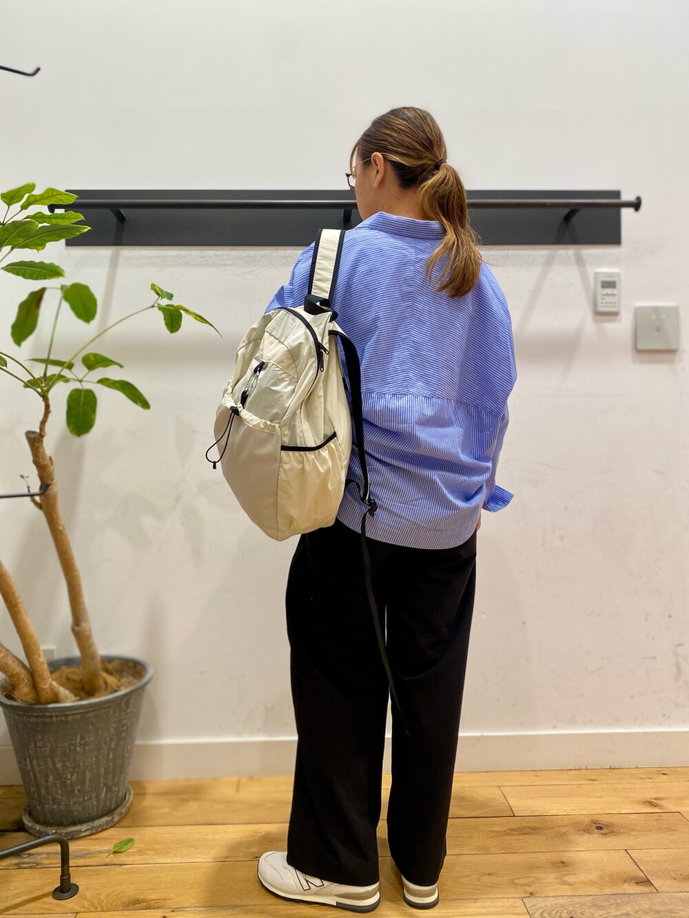 パンツは2タックで程よいワイドなシルエットなのでスニーカーでもパンプスでも合わせられます♪