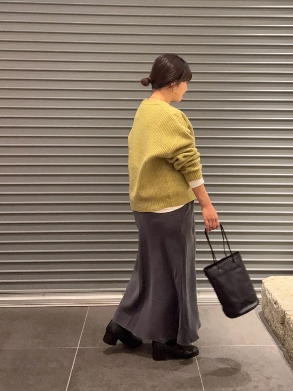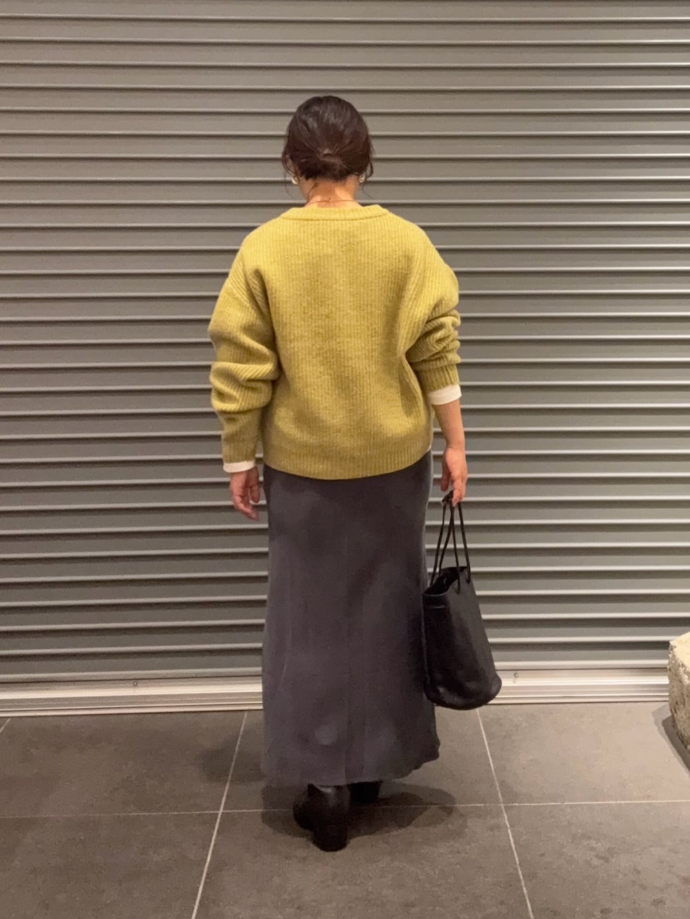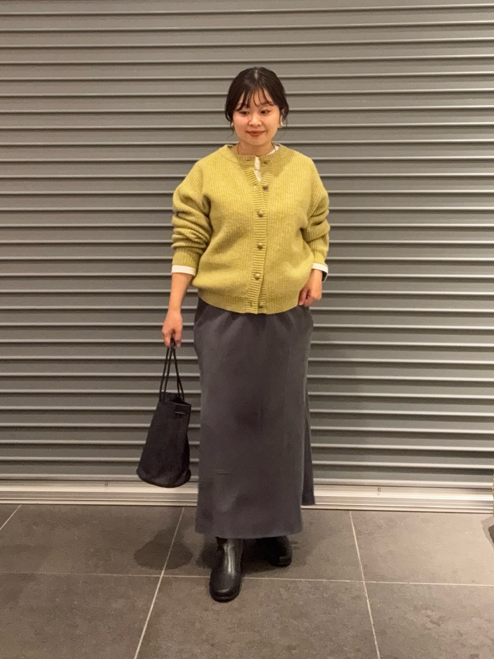 イエロー×グレーの組み合わせ、華やかな印象になり秋冬コーデにおすすめです。