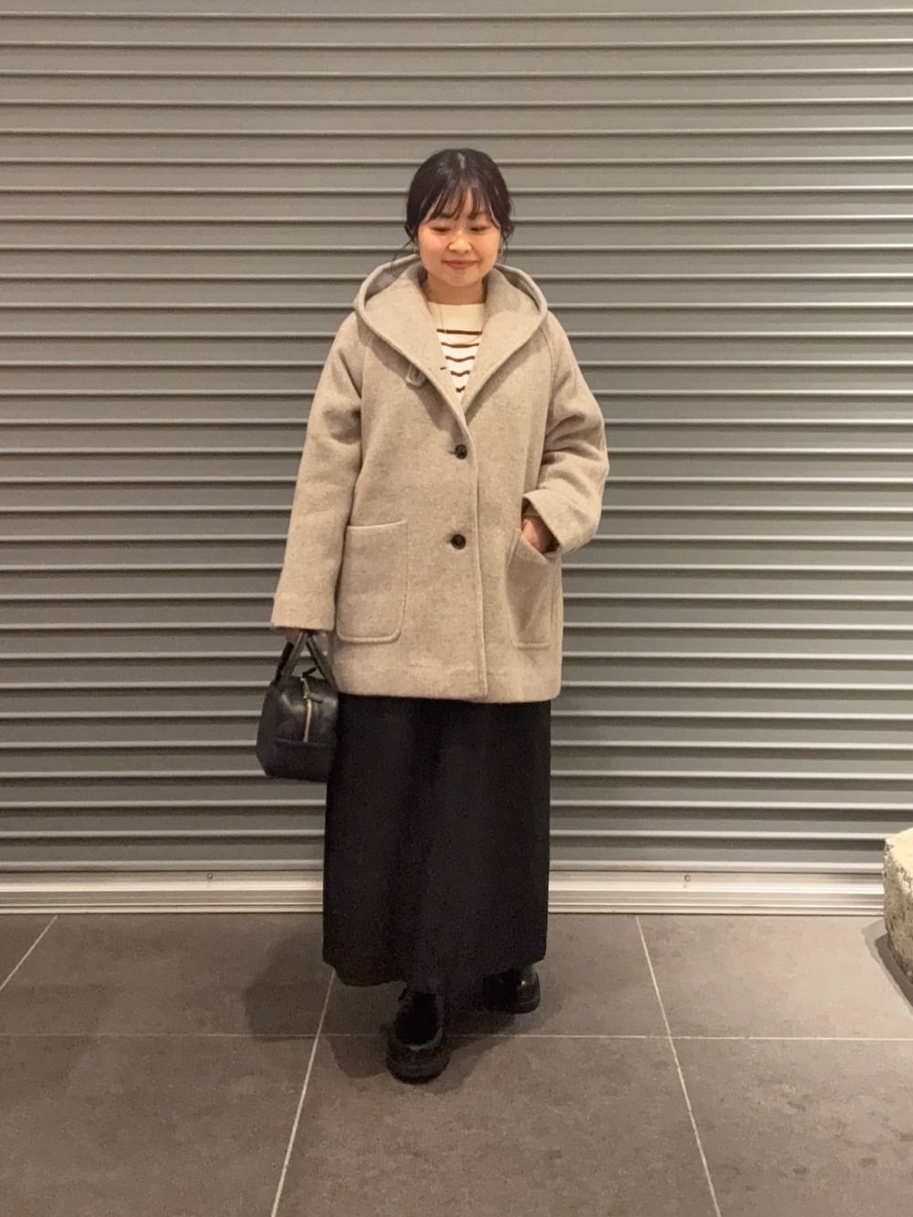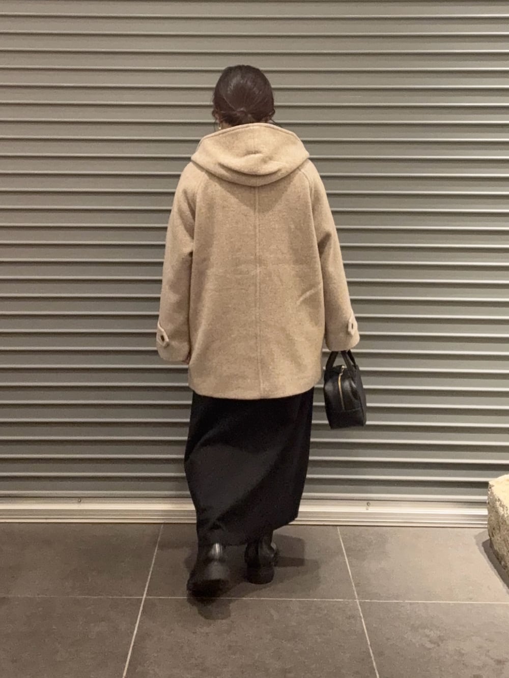 とても軽いウールコートです。フードがしっかりしていてしめると首まわりかなり暖かく防寒対策もばっちりです。