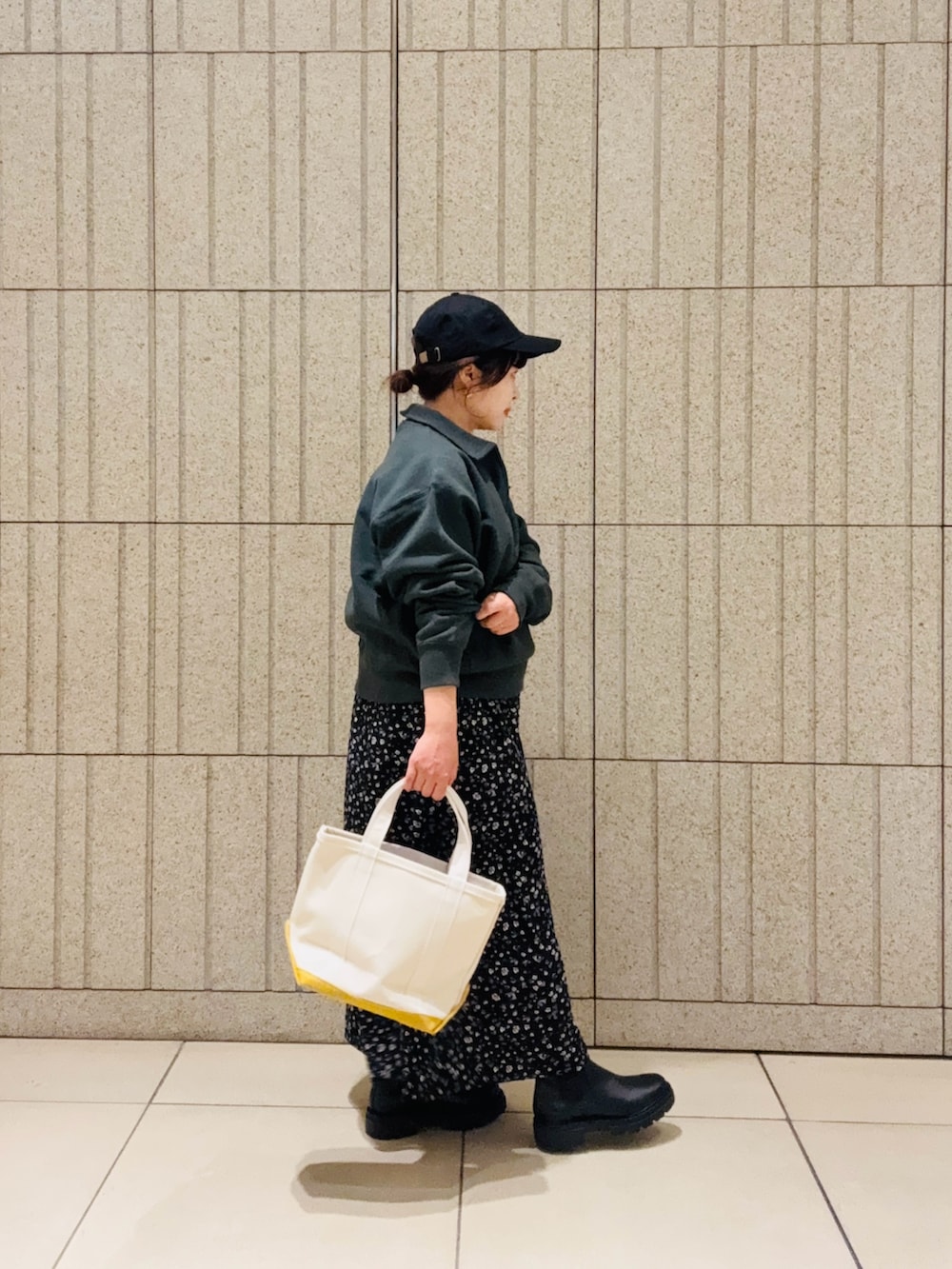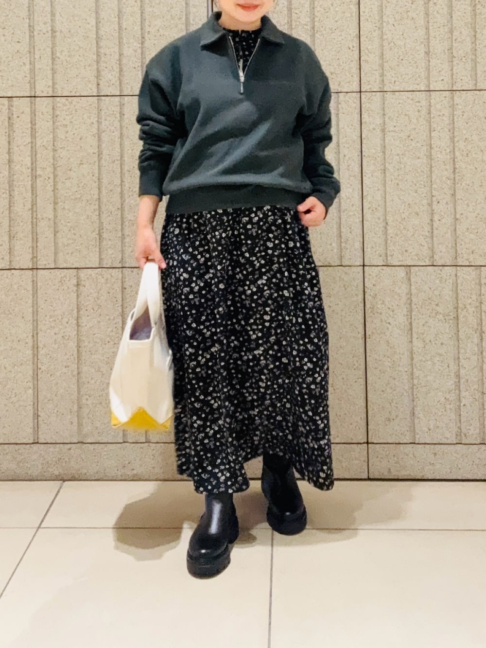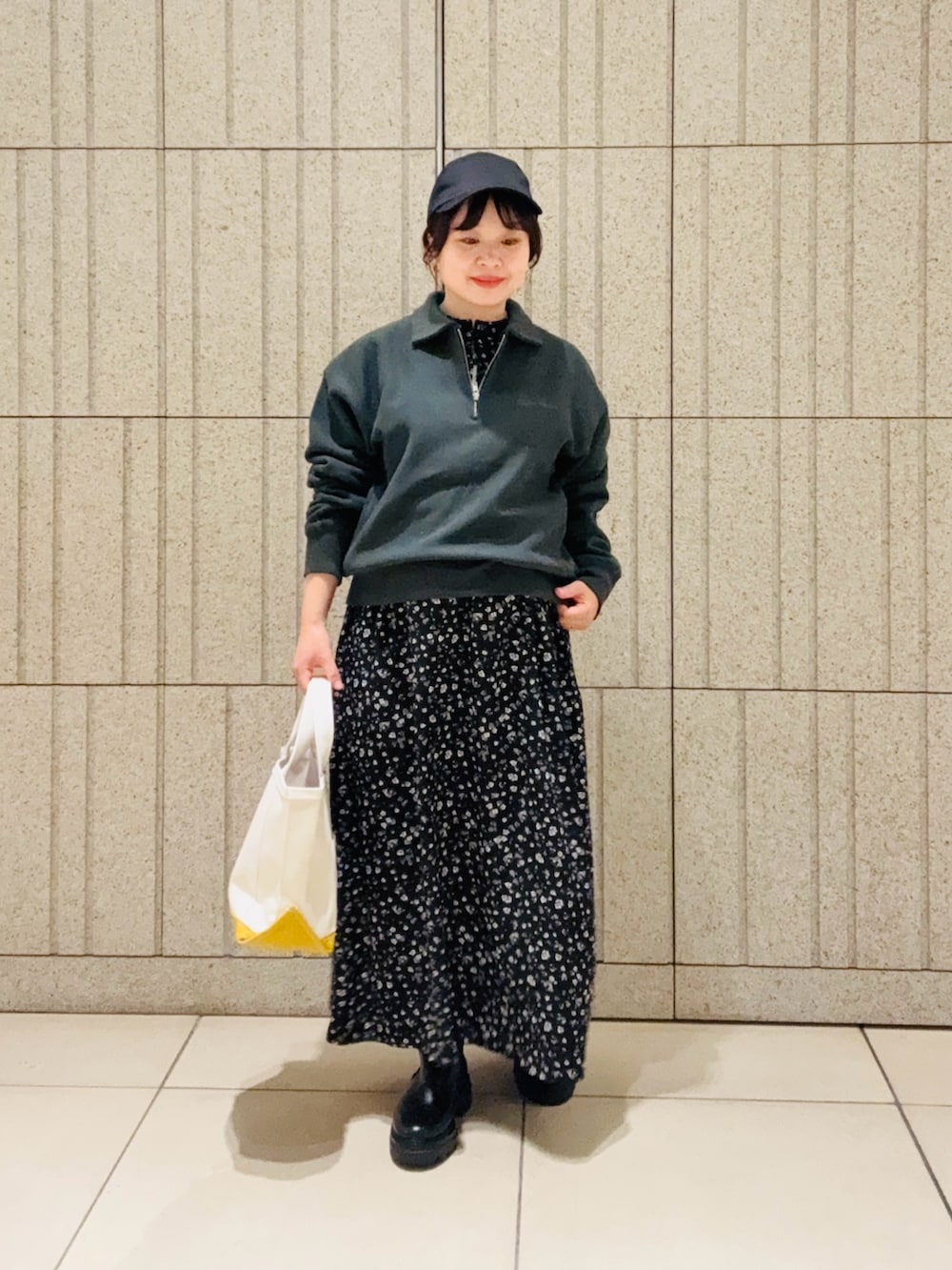 チャンピオンのハーフジップスウェットを合わせてカジュアルお出かけコーデにしました。