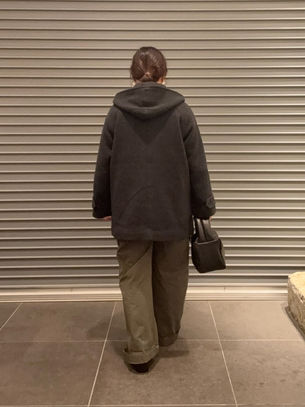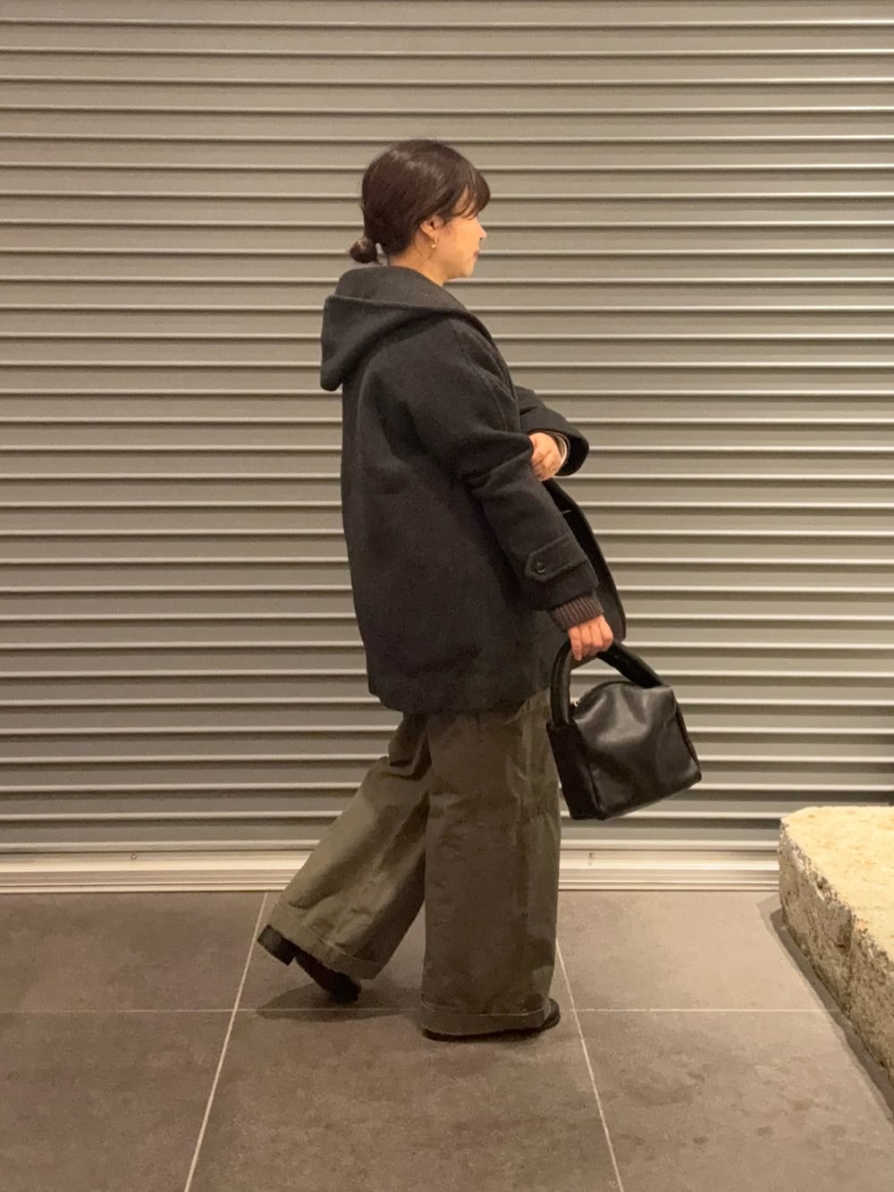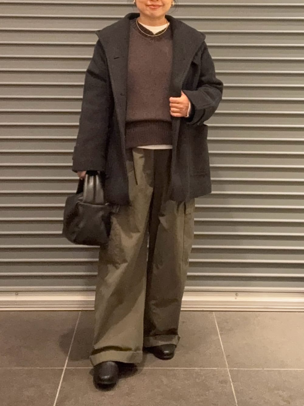 ゆったりシルエットなので厚手ニットも着込め、ミディアム丈で腰まわりもカバー。