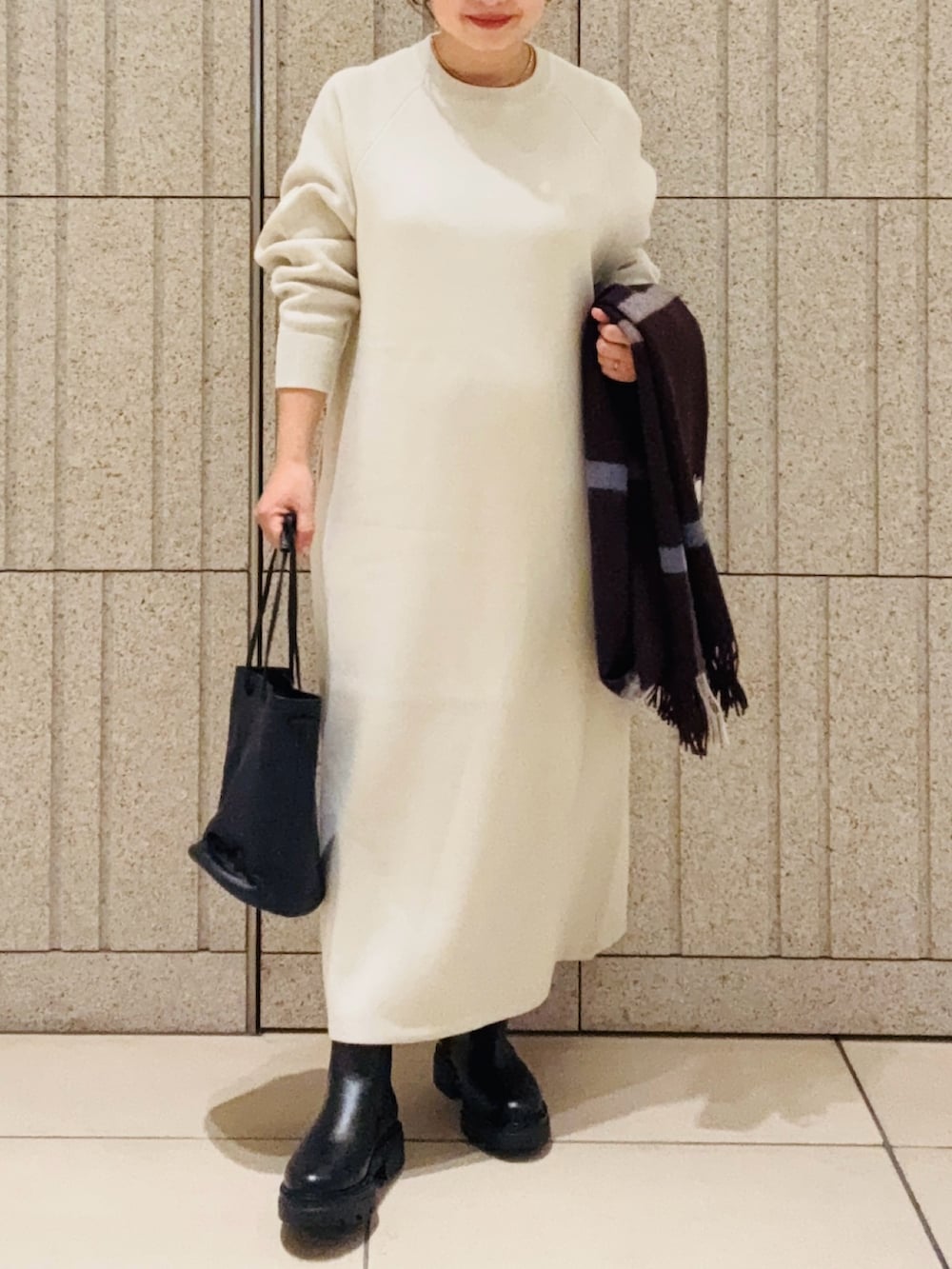 ベーシックなデザインなので、ストールやバッグなど冬小物でアレンジ自在です。