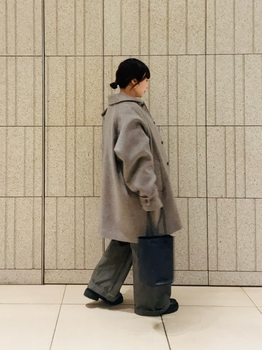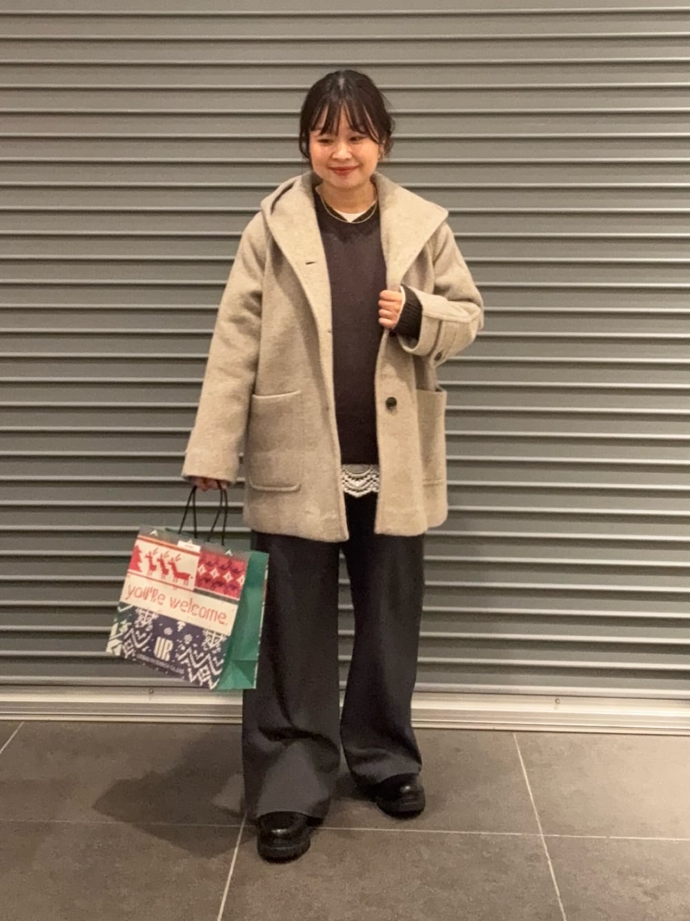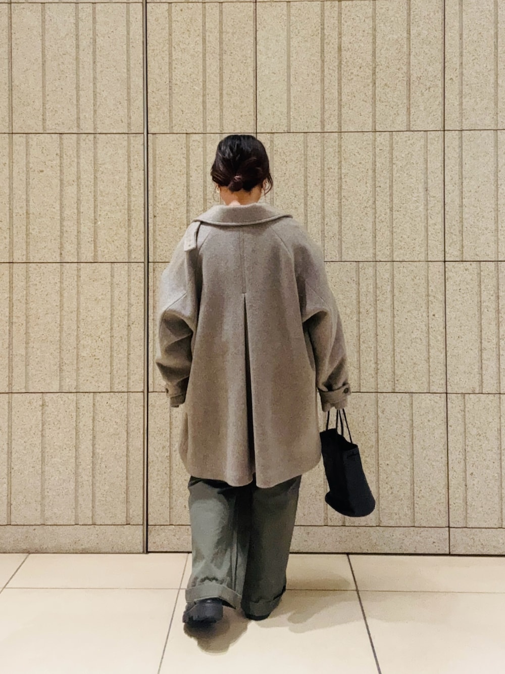 シルエットが可愛いウールコートです。カシミヤ混の素材なので、柔らかい素材感で上品な印象で着れます。ショート丈なので、低身長の方にも。