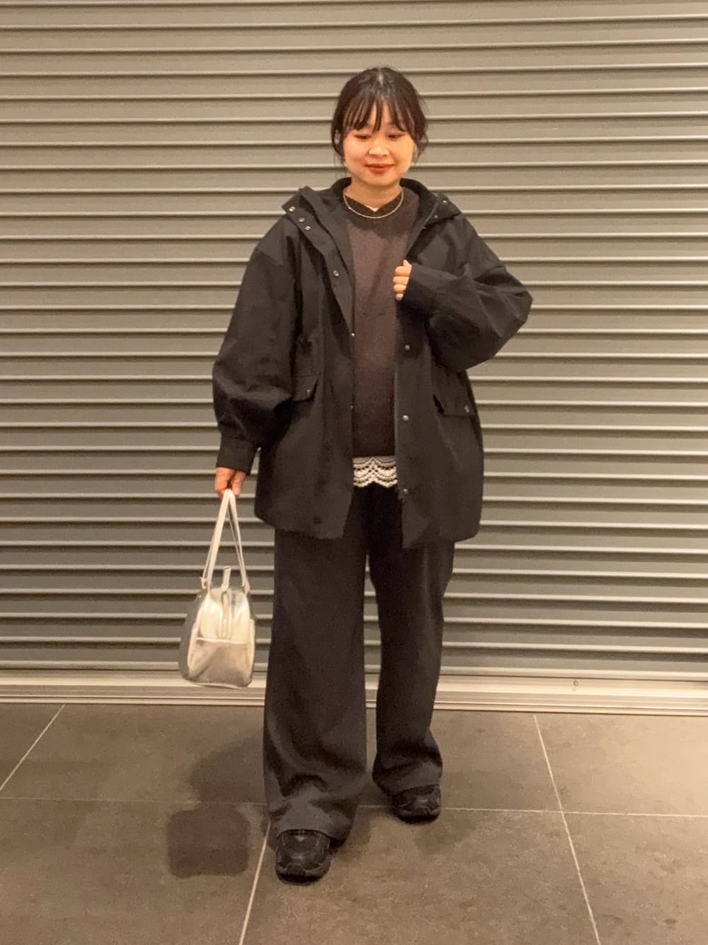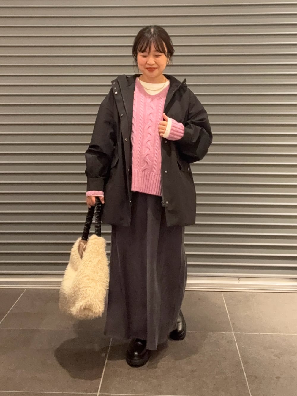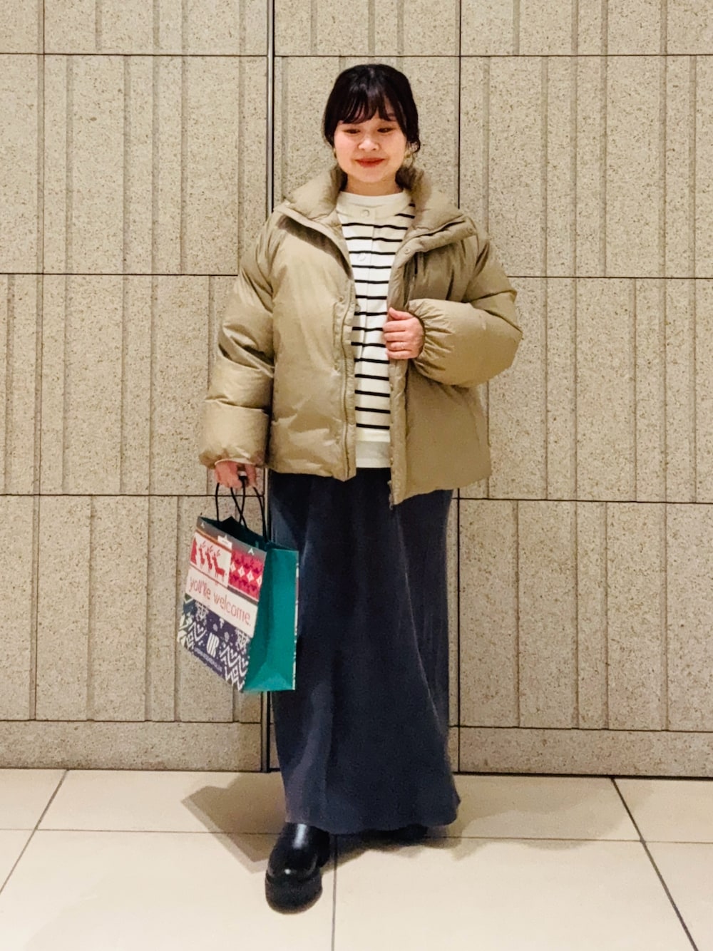 シルエットが可愛いウールコートです。カシミヤ混の素材なので、柔らかい素材感で上品な印象で着れます。ショート丈なので、低身長の方にも。