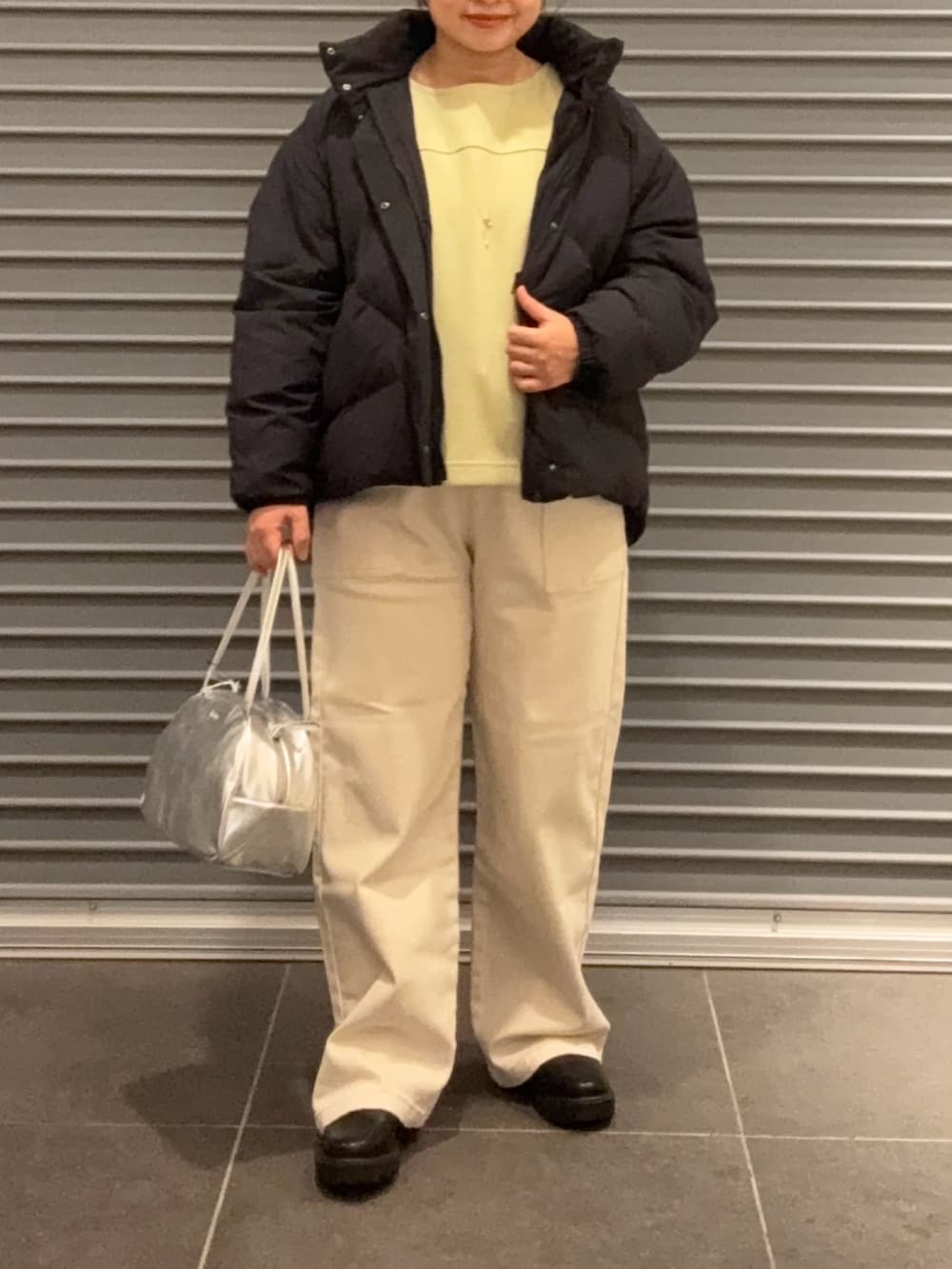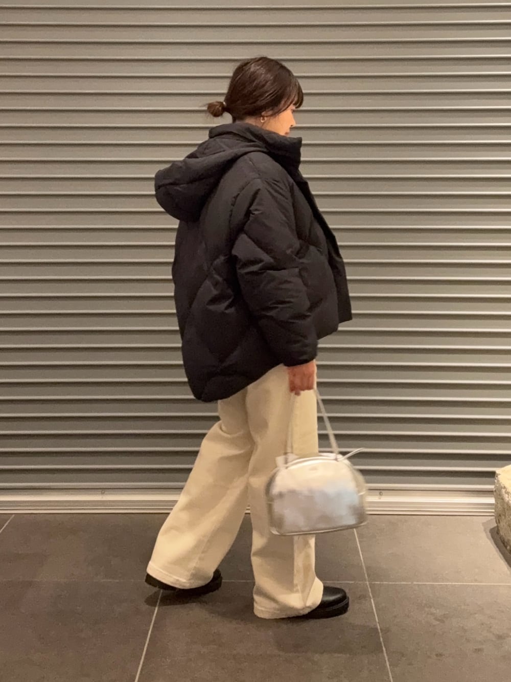 とても軽く暖かいダウンです。後ろ下がりのシルエットなので、ボトムス選ばず万能に着れます。低身長の方にもおすすめです。