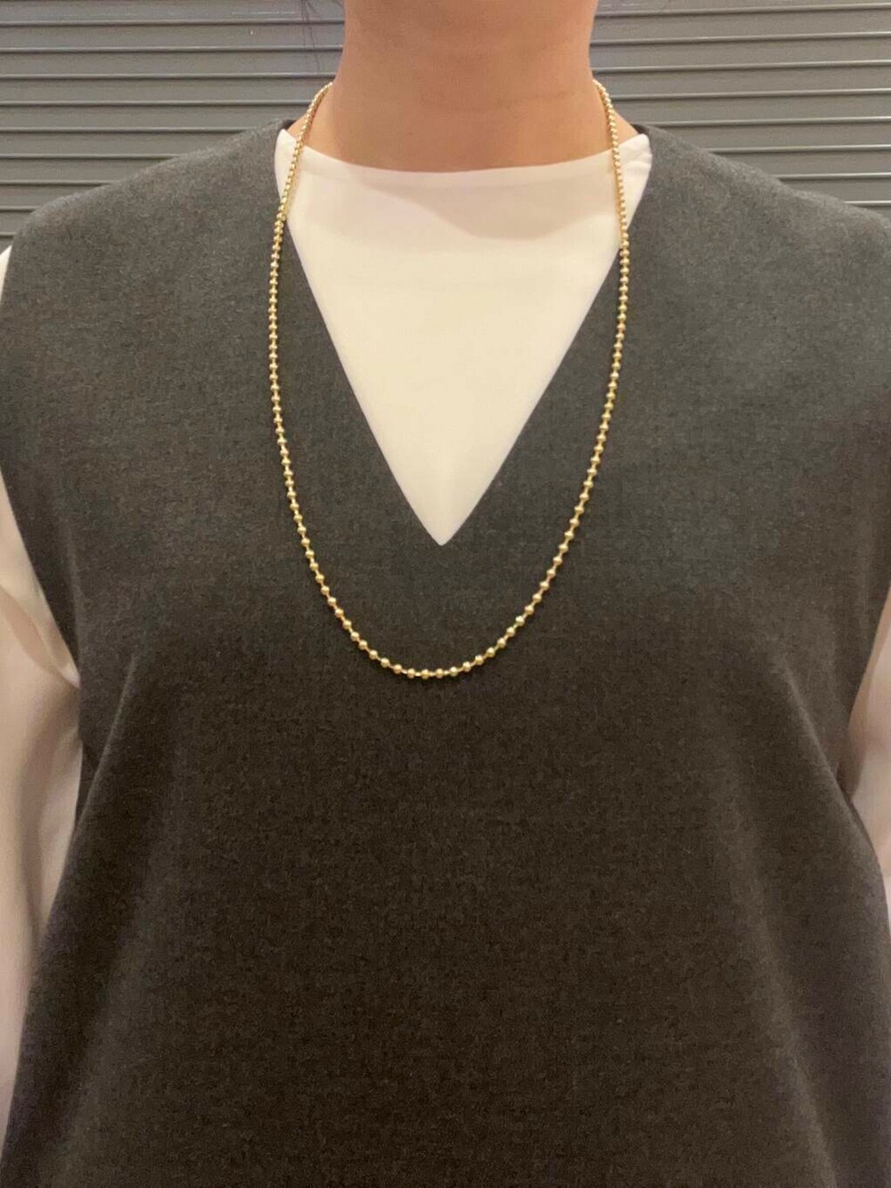 V開きなのでボールチェーンネックレスを合わせてみました!