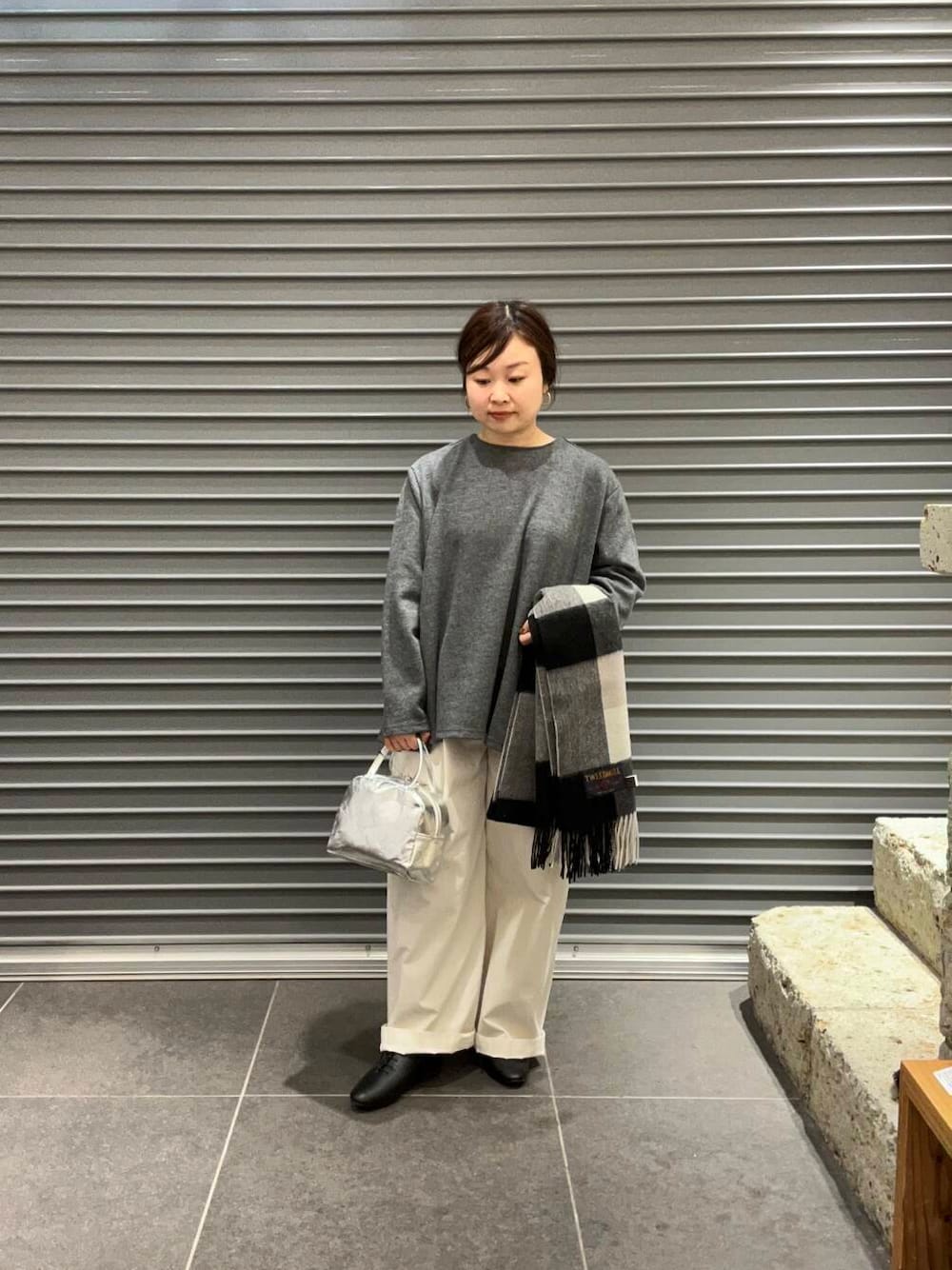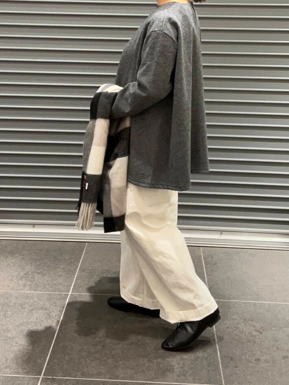 モノトーンコーディネートで、ストールもカラーを合わせました!TWEED MILLのブラックカラーとても合わせやすいカラーです🤍