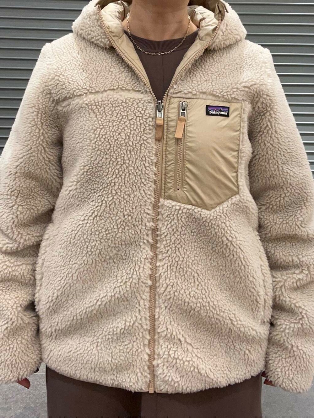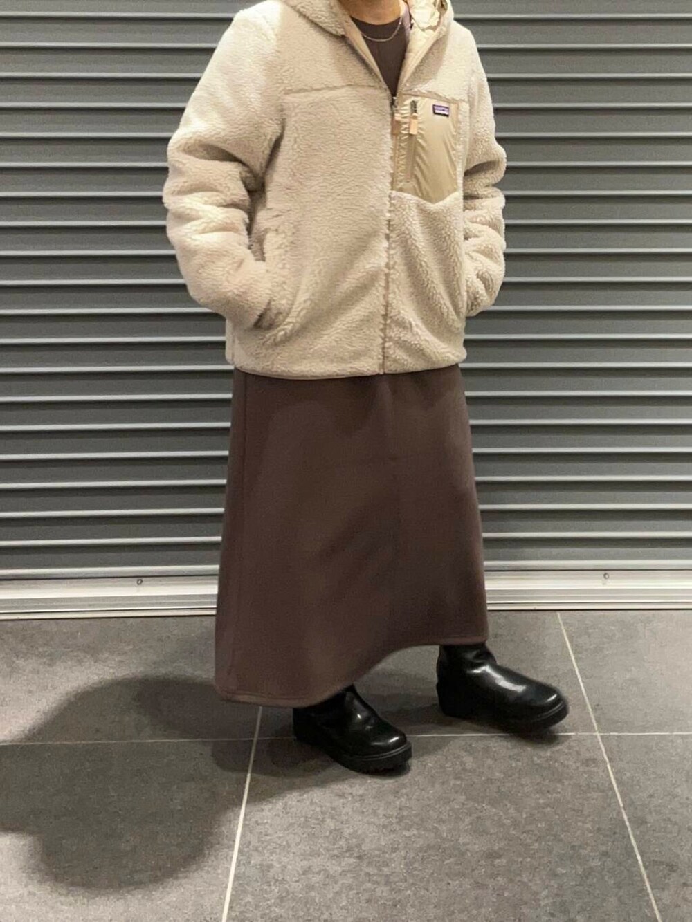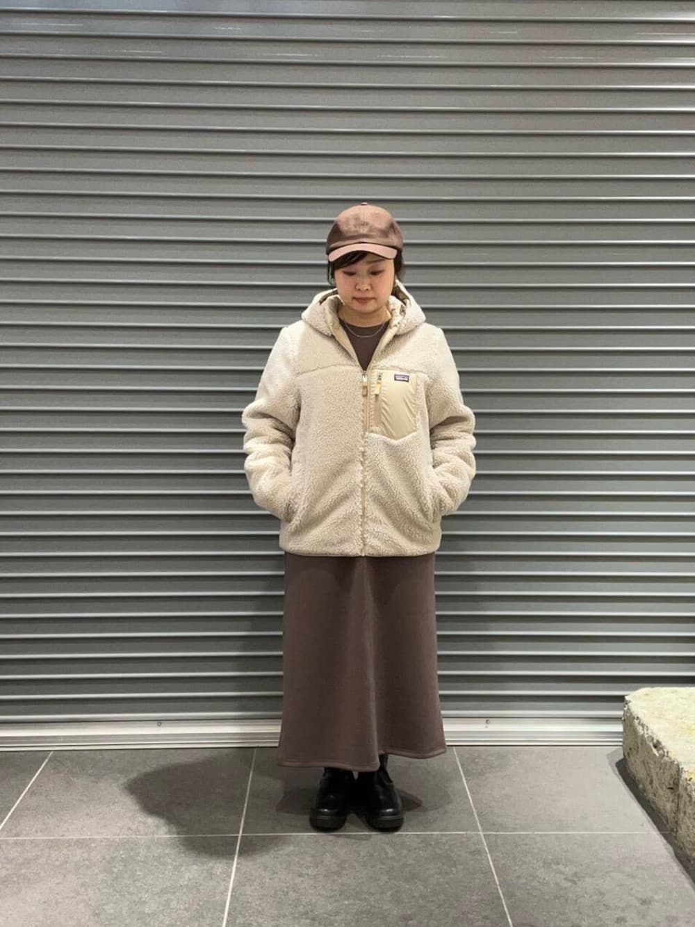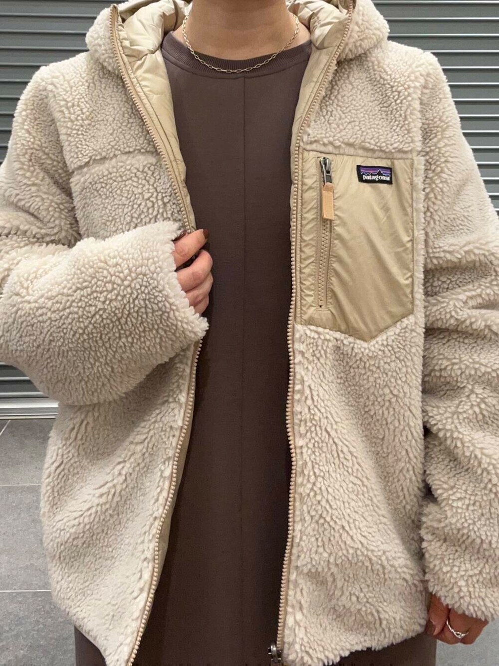 パタゴニアは合わせやすいベージュを着てみました!サイズはキッズXXLなので、程よくゆとりがあり中にも着込めます。