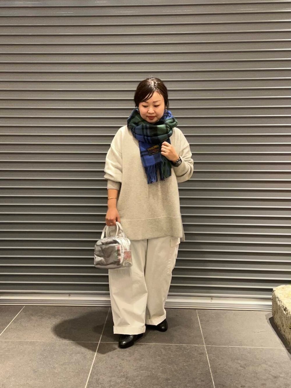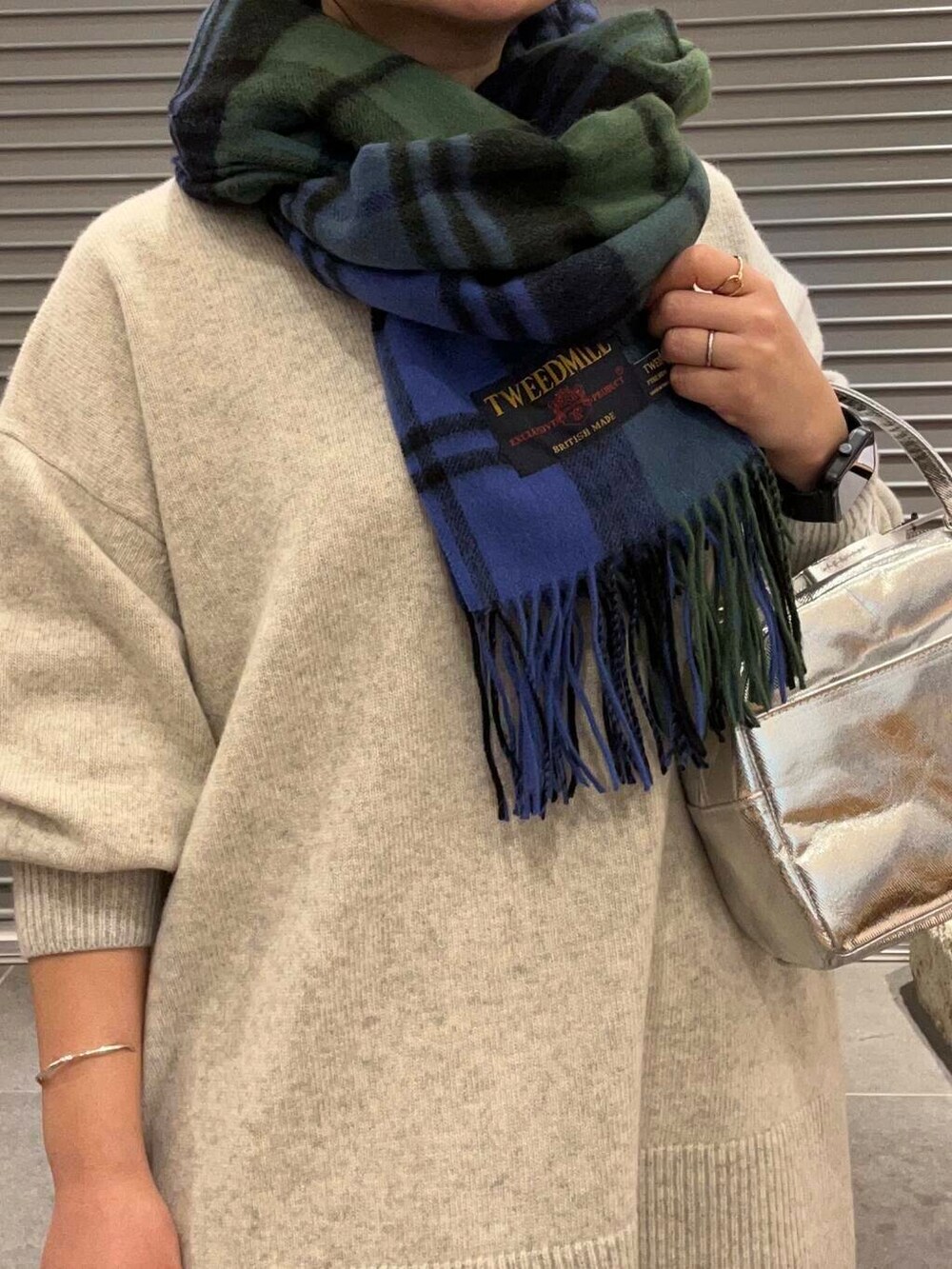 ストールはボリュームがあり、柔らかい素材なので、肌触りがとても良いです。イタリア巻きにしてボリュームを出して巻いても🙆‍♀️