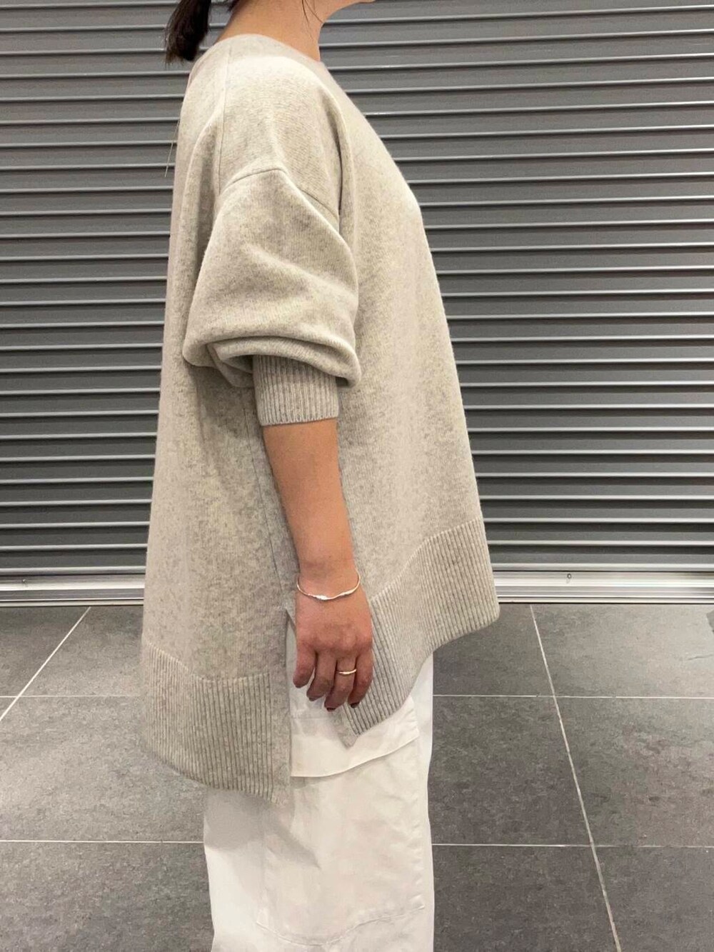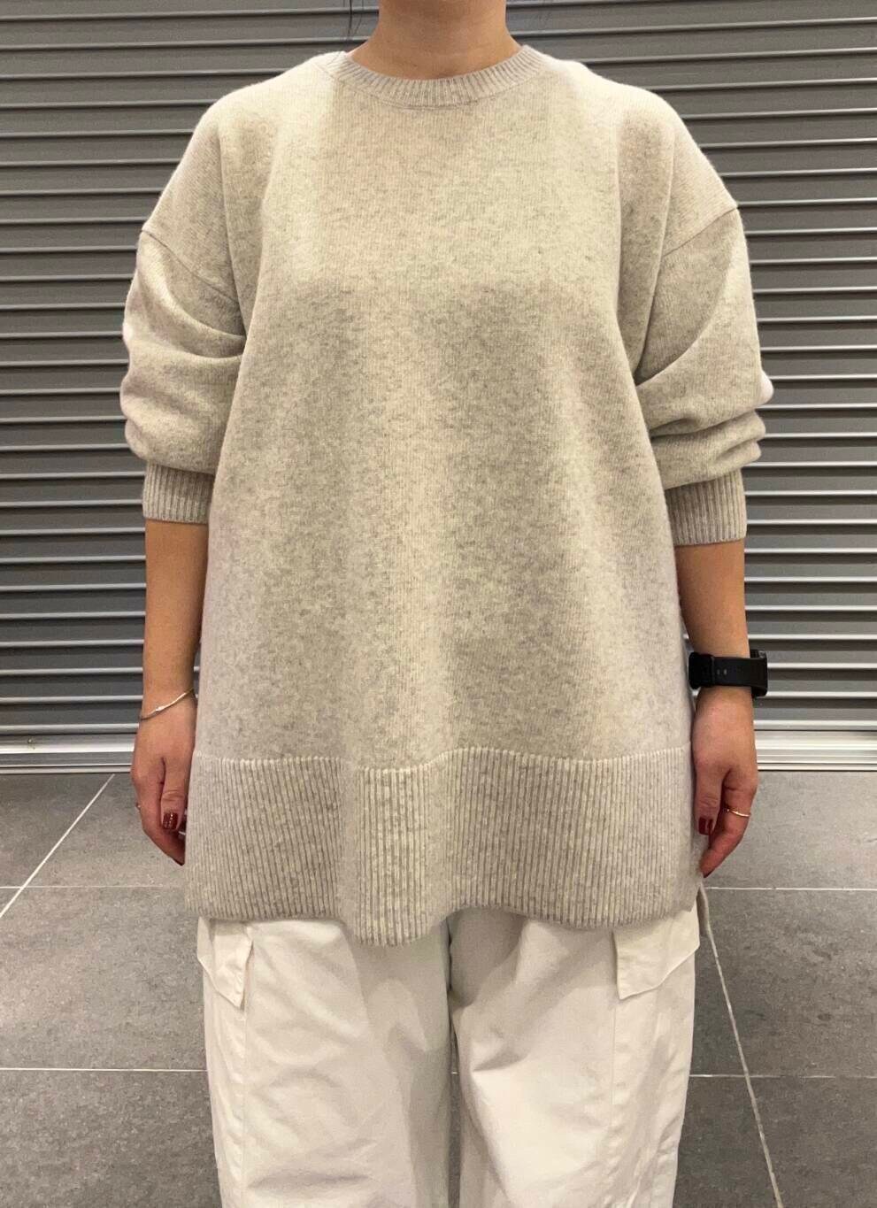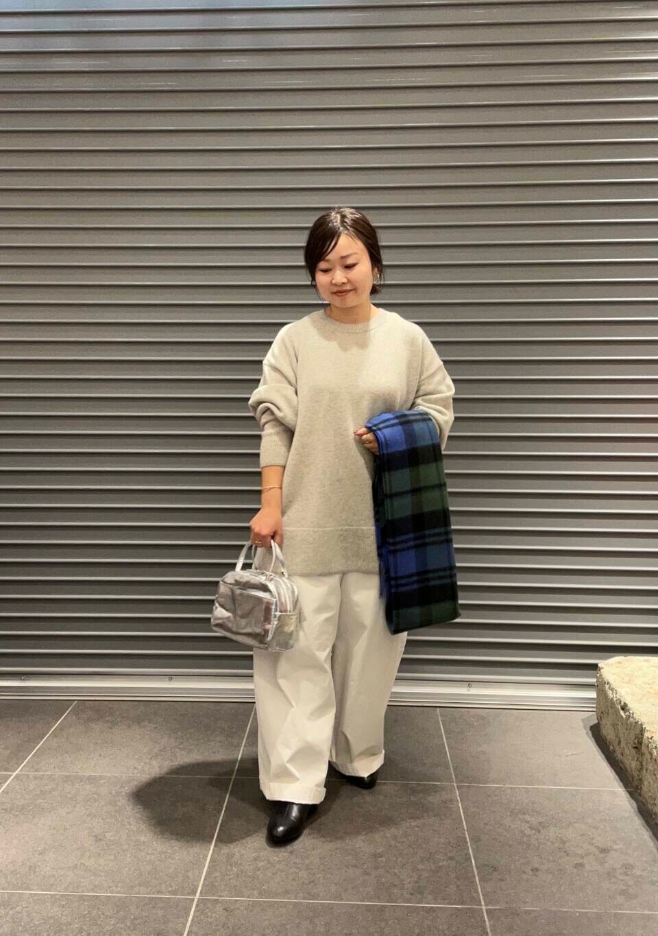 ハミルトンウールチュニックは、着丈がしっかりあるのでパンツでもスカートでも合わせやすいデザインです。ライトグレーは柔らかい印象で着れます。