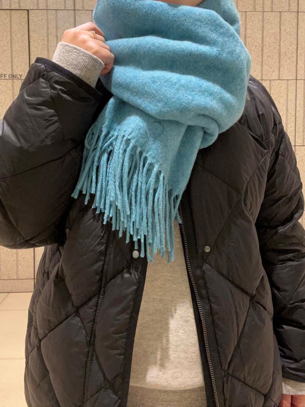 ストールは柔らかくボリュームがあるので、しっかり防寒出来ます⛄️ブルーはポイントカラー使いにも!