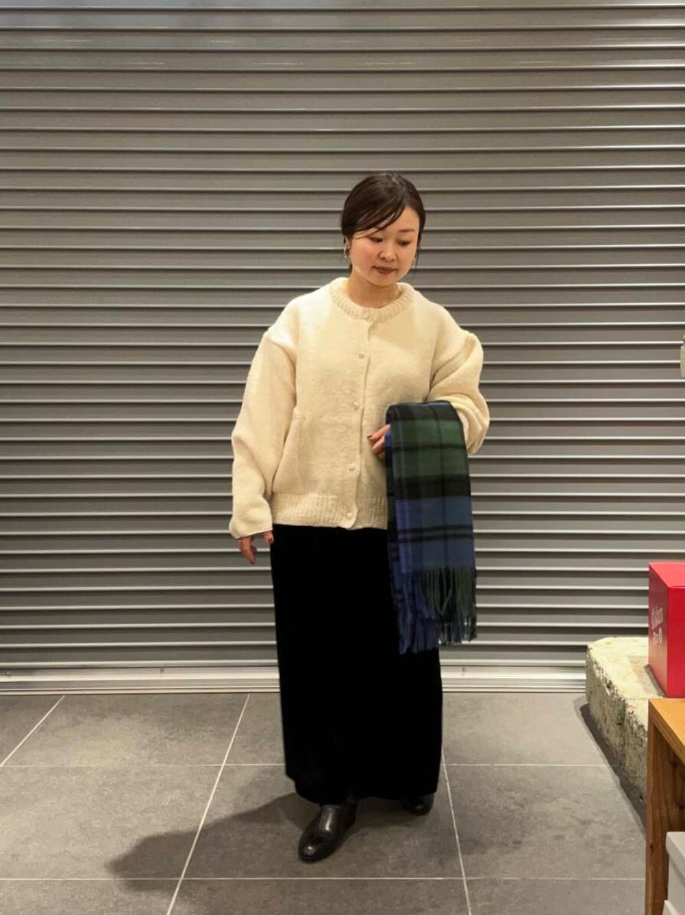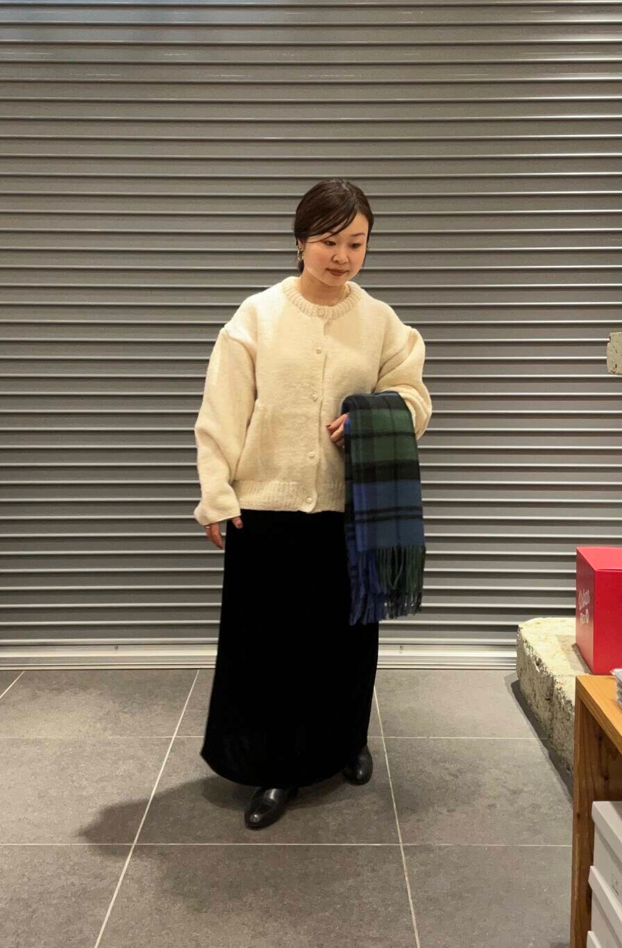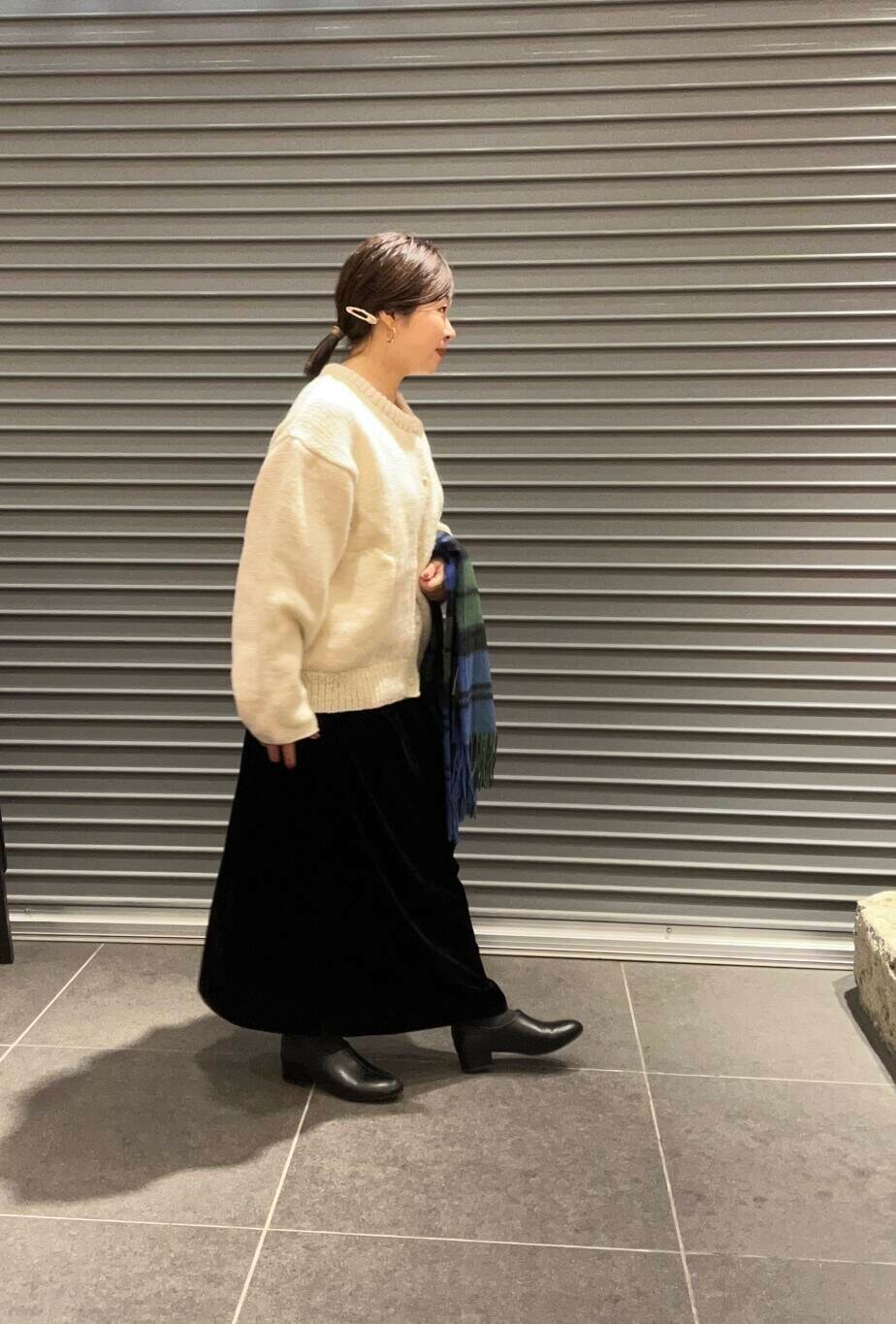 トップスにボリュームがあるので、ボトムスはすっきり着れるベロアスカートを合わせました!