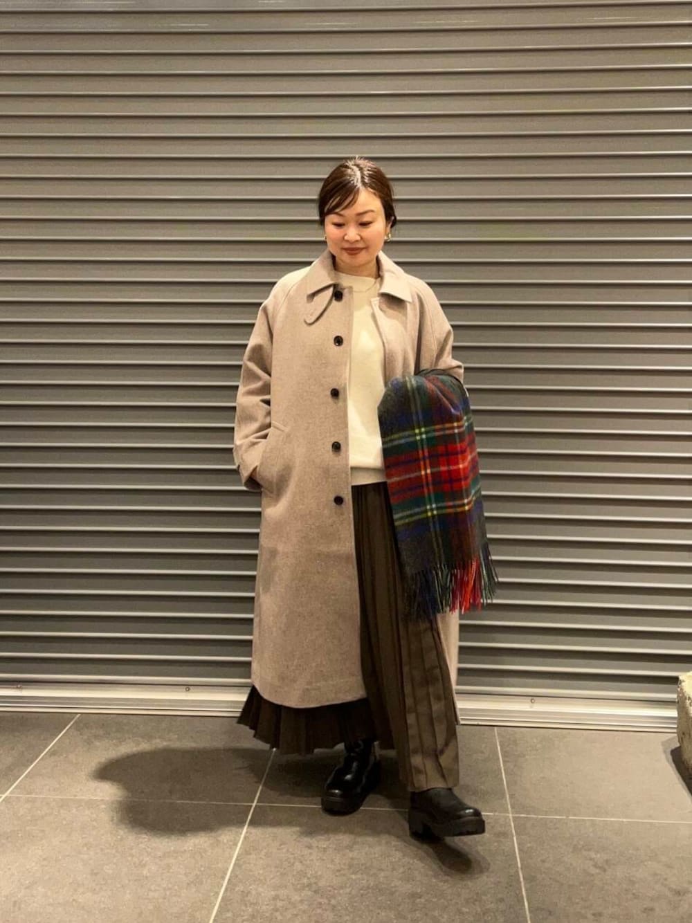 シンプルなコーデなので、TEEED MILLストールをポイントにしました。