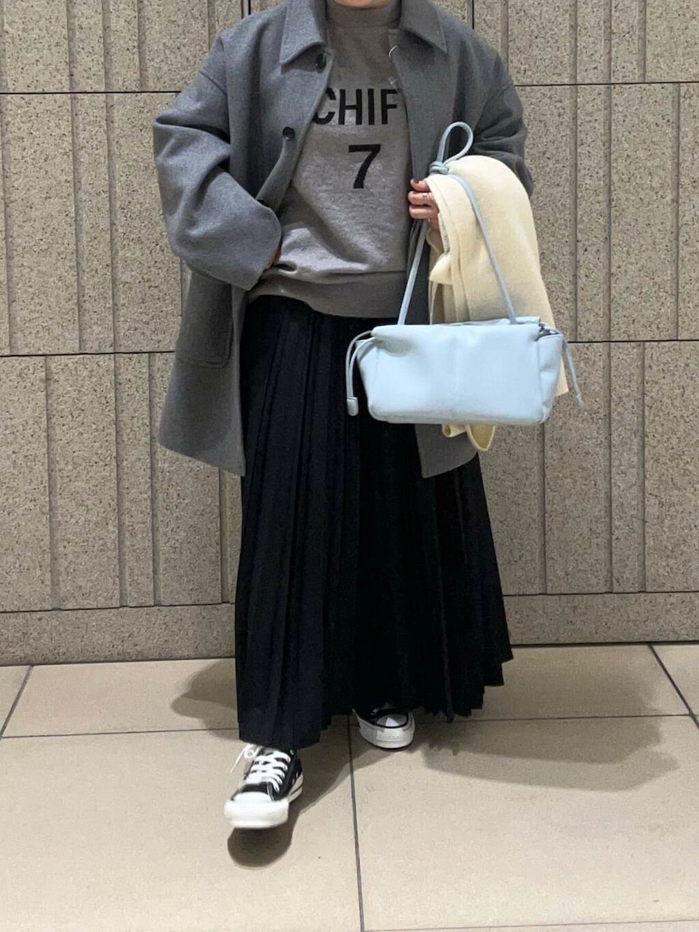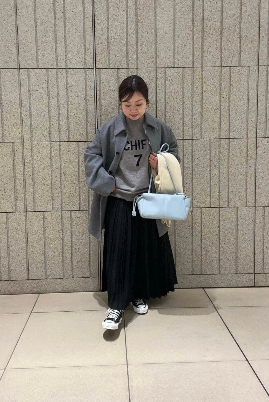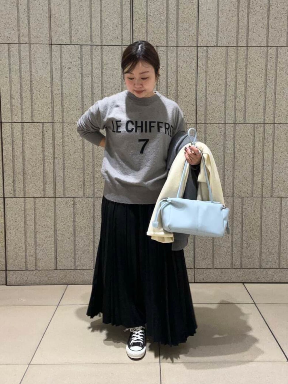ニットはやや薄地なので、今から春先まで着れる生地感です。今回はカジュアルにスニーカー合わせにしました。