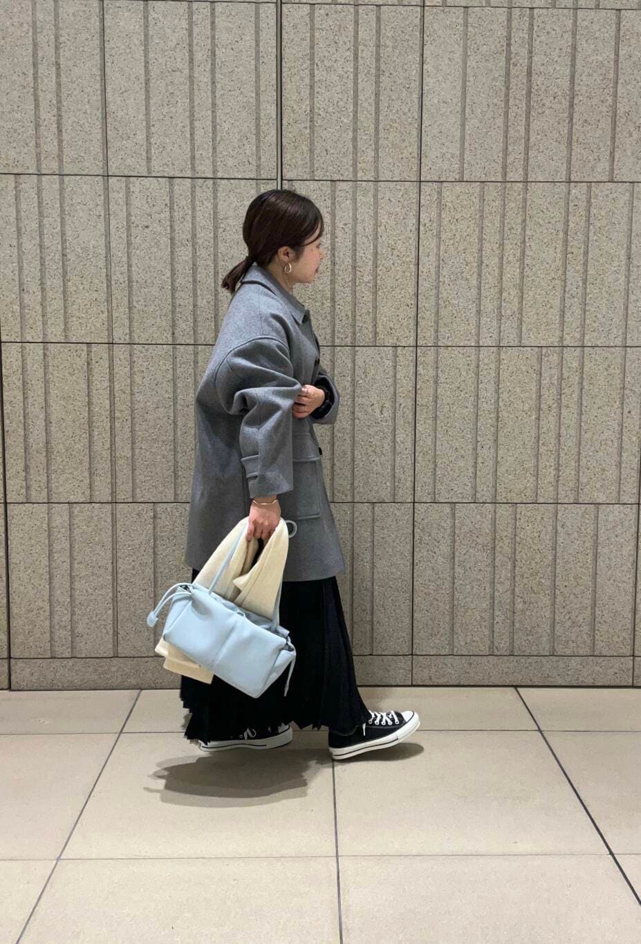 ショルダーバッグは小ぶりでも、マチがあるので必要なものはしっかり収納出来ます。ライトブルーはポイントに!