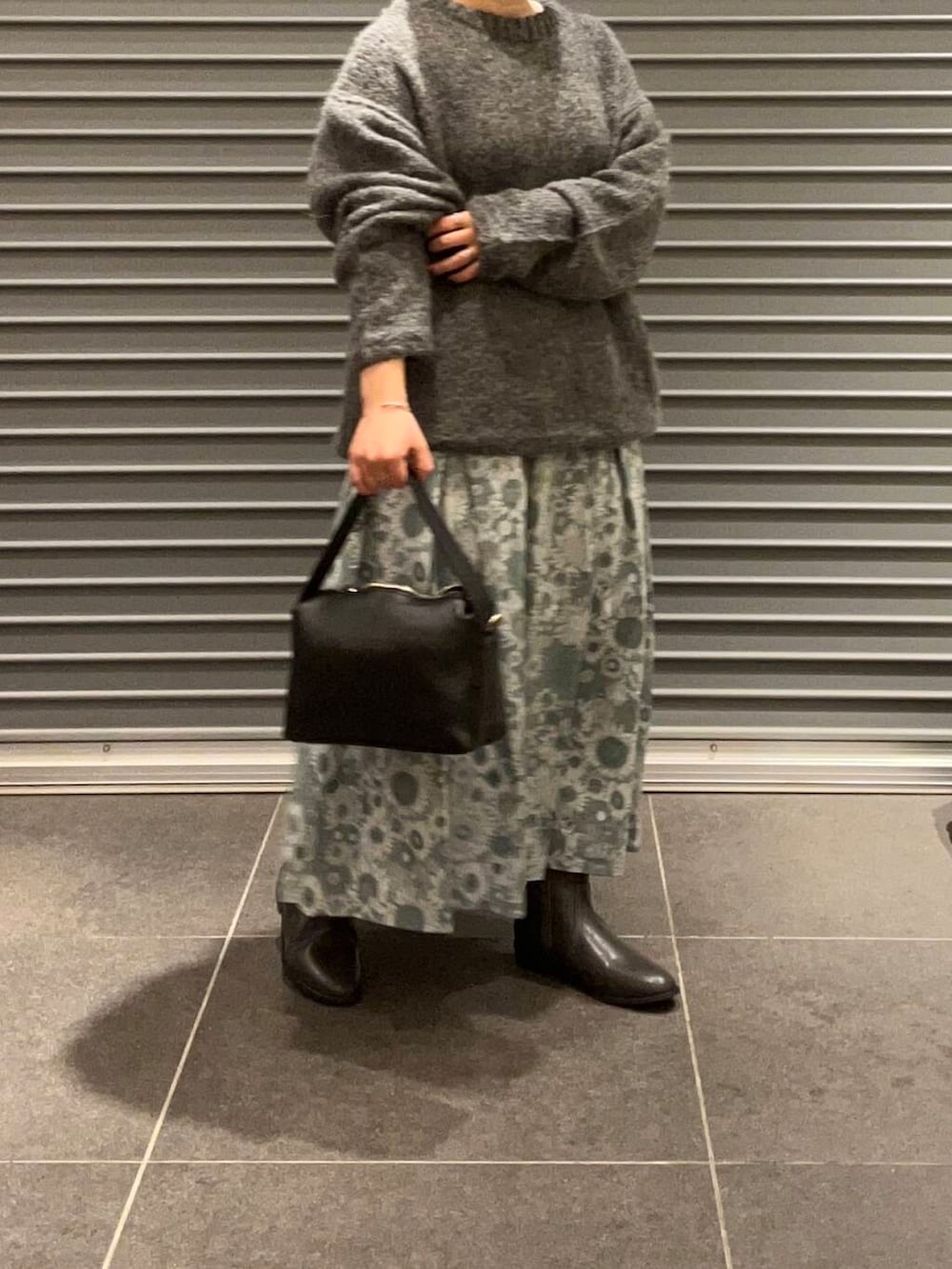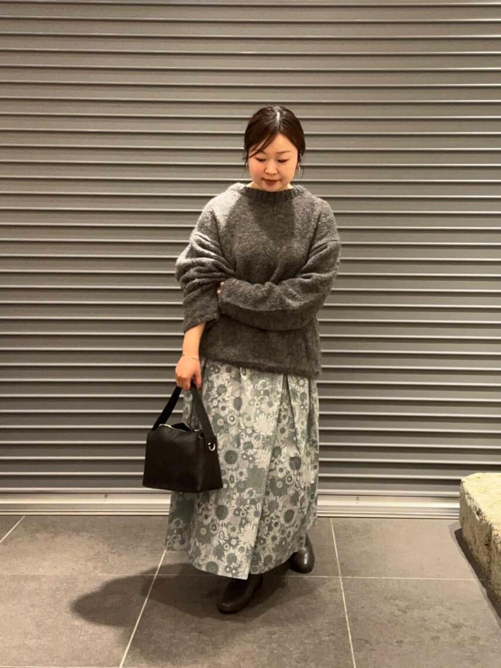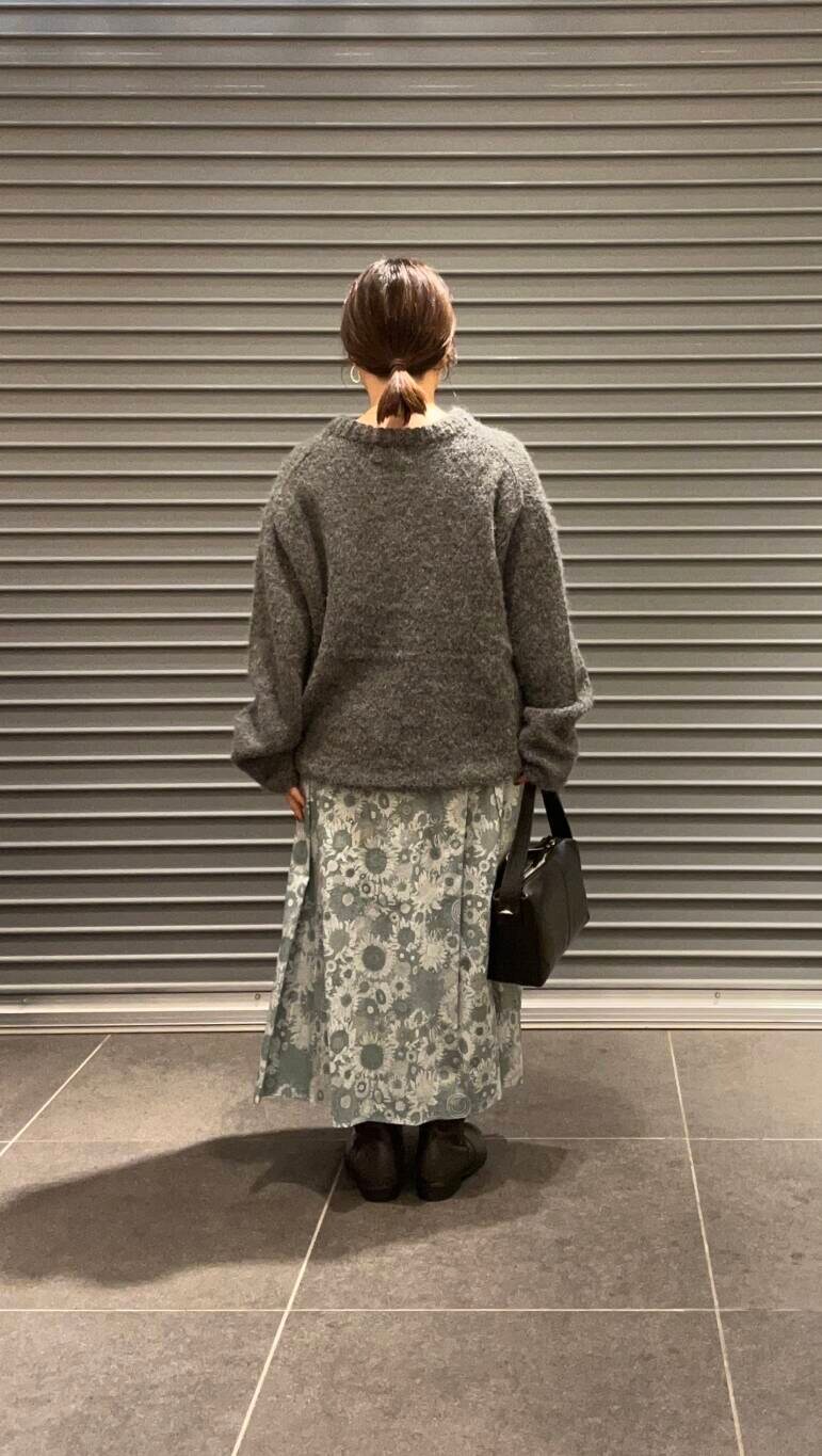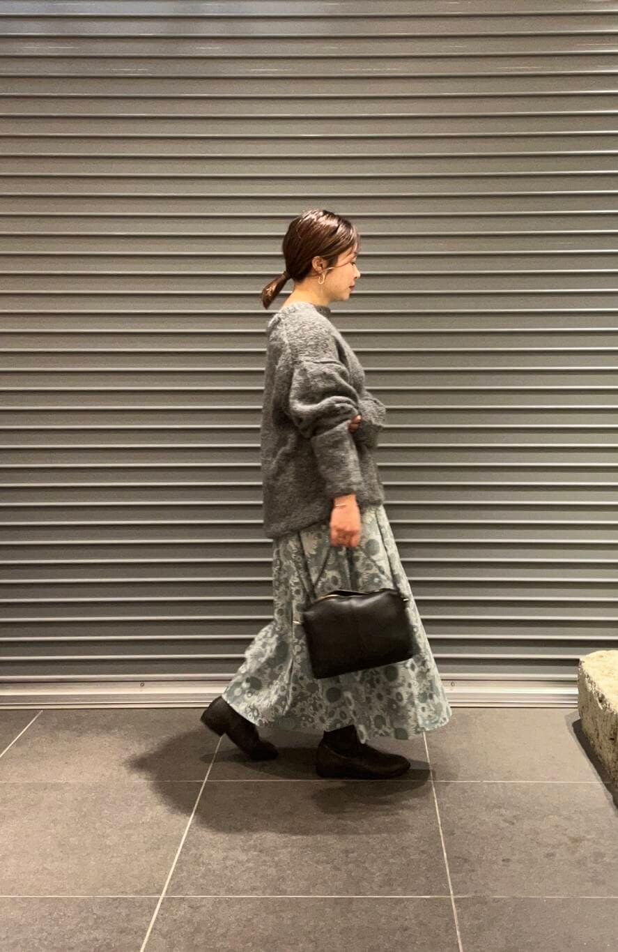 スカートが主役になるように他のアイテムはグレー、ブラックでまとめてみました。