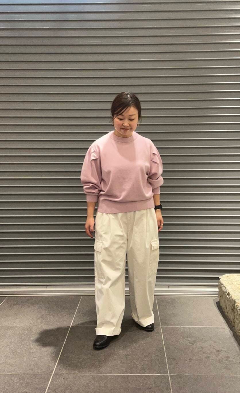 ピンクは暗くなりがちな冬コーデの差し色にもなり、おすすめです。タックの入ったボリュームスリーブなので1枚で華やかな印象になります。