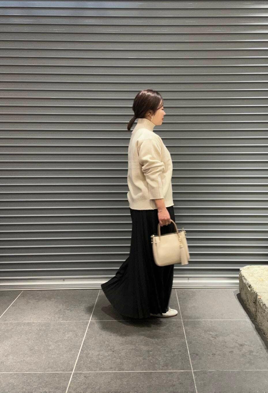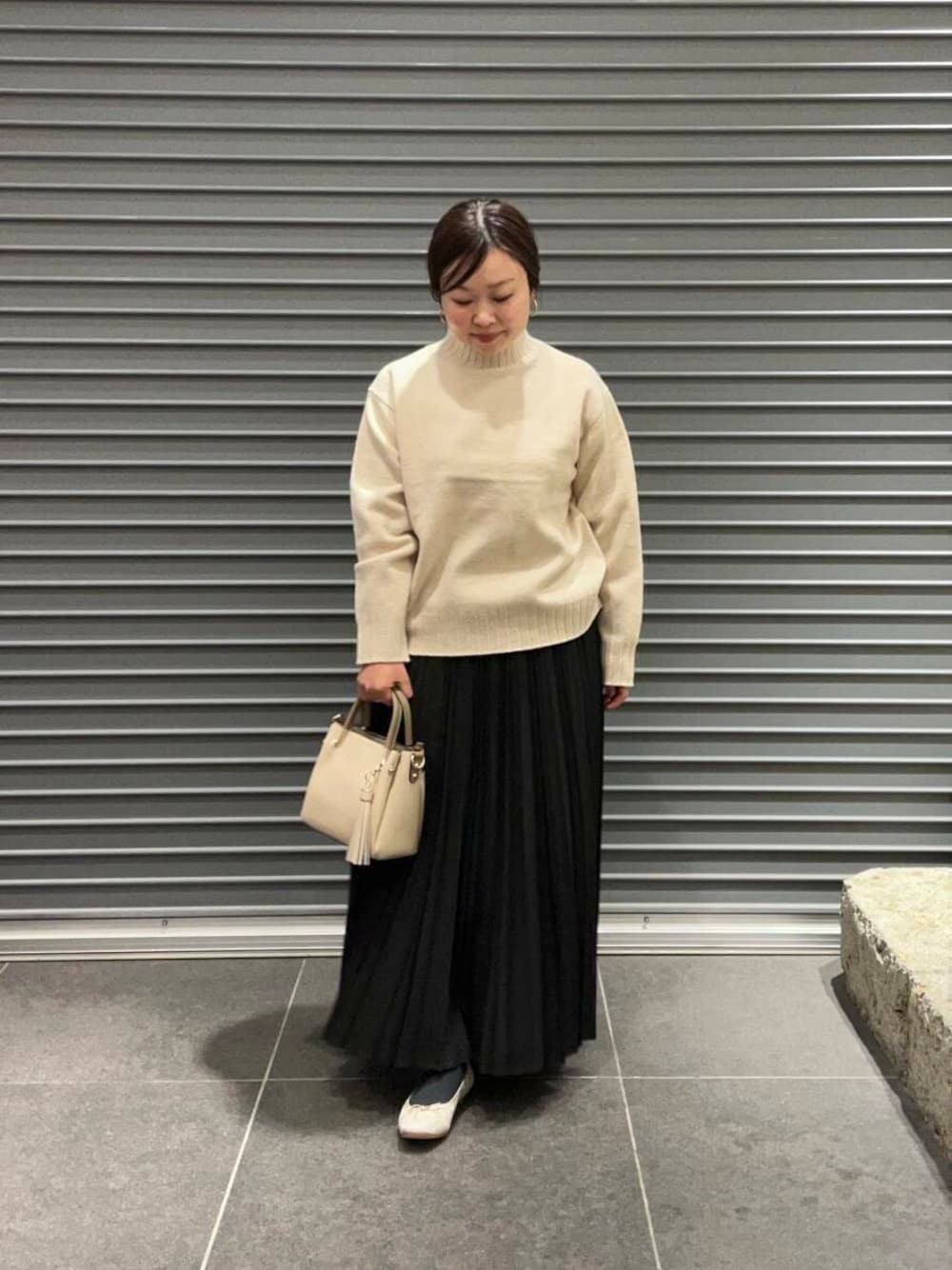 ニットは程よくゆったりシルエットで着やすいデザインです。スカートもウエストゴムなので、ストレスフリー😌